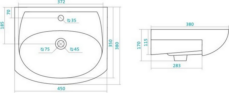 Умывальник серии Азов 45 – это прямоугольная раковина, из санфаянса, выделяется отличными характеристиками прочности, устойчивости к повреждениям.