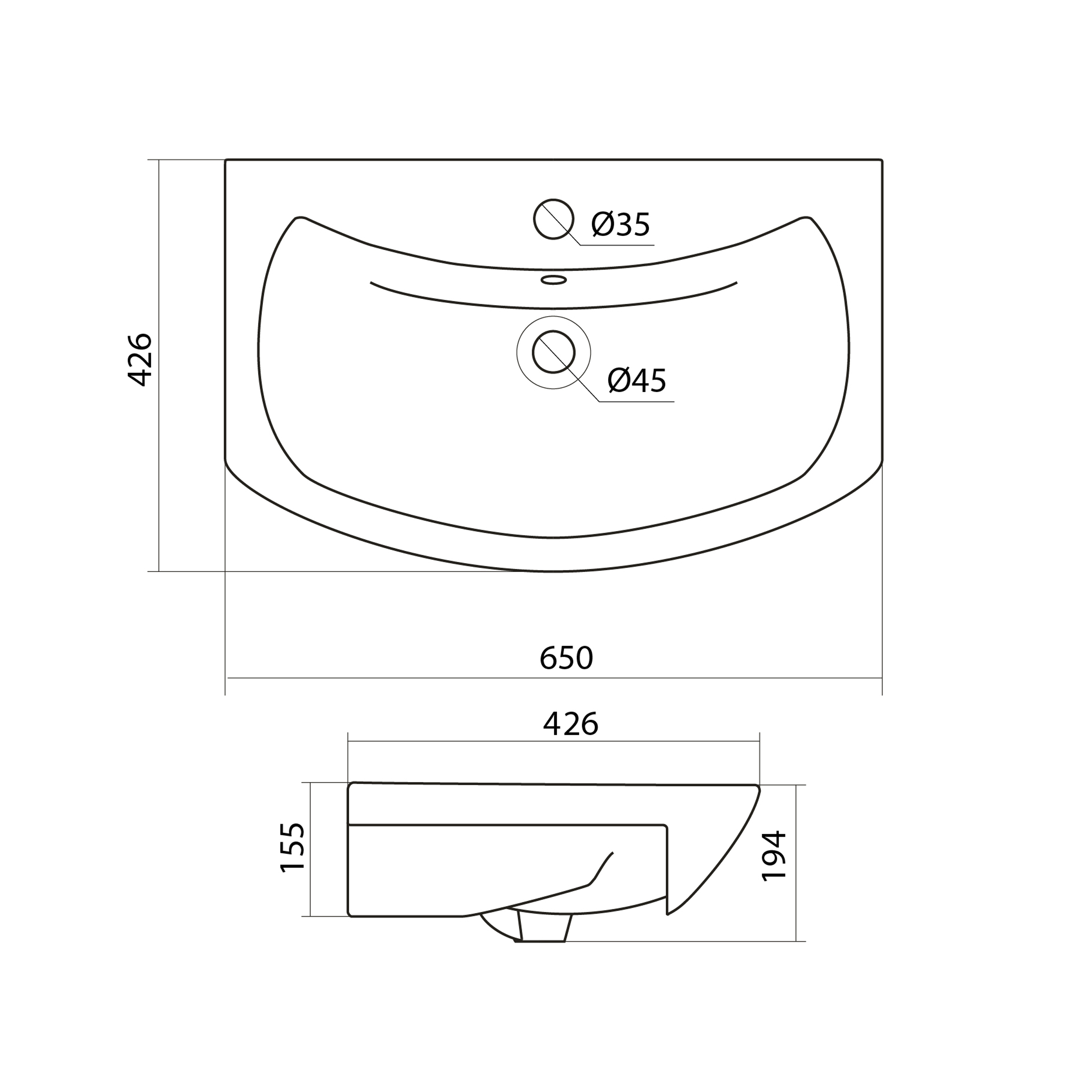 Состав поставки: раковина с переливом