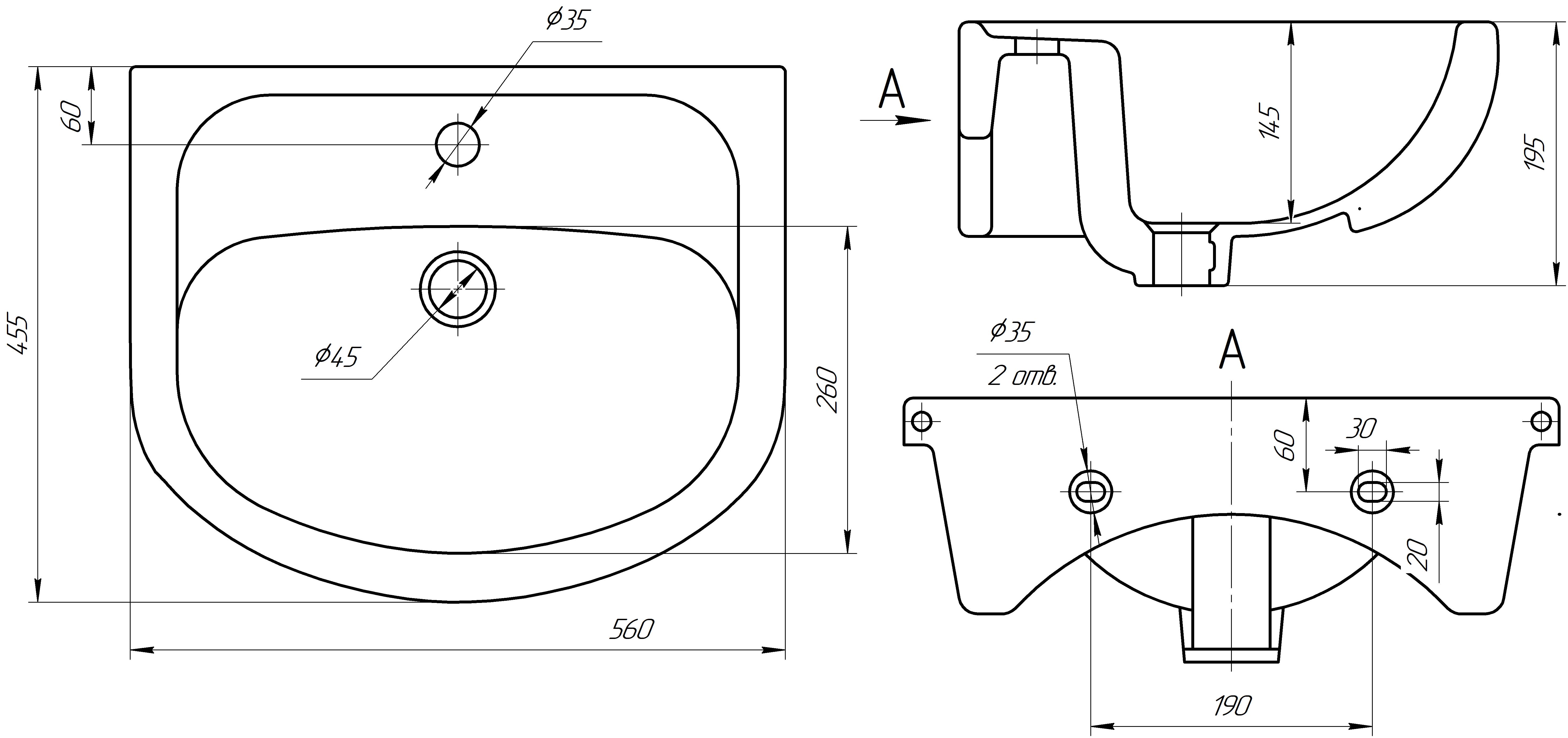 Раковина встраиваемая Универсал Элегия 55