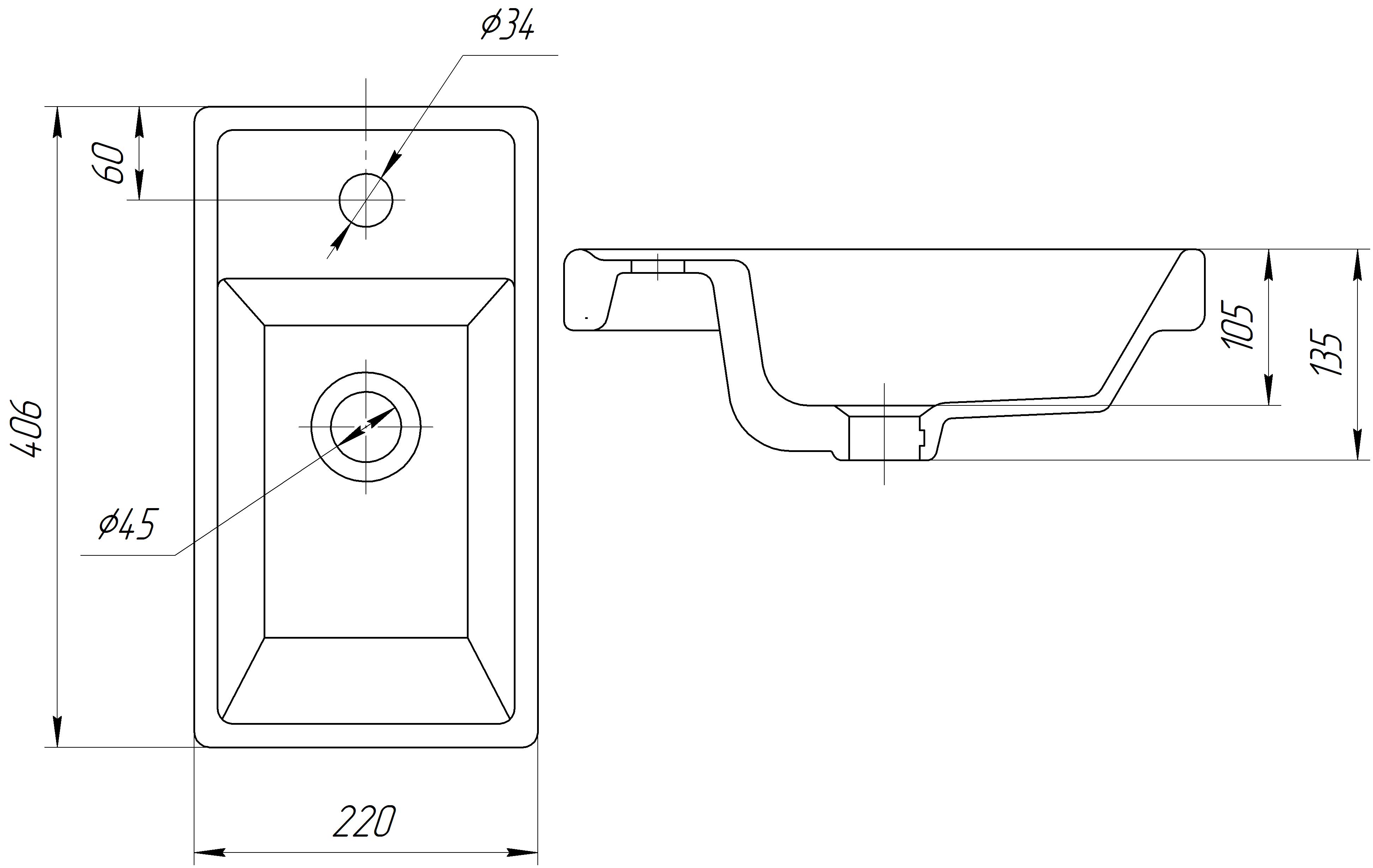 Раковина встраиваемая Универсал Енисей 40