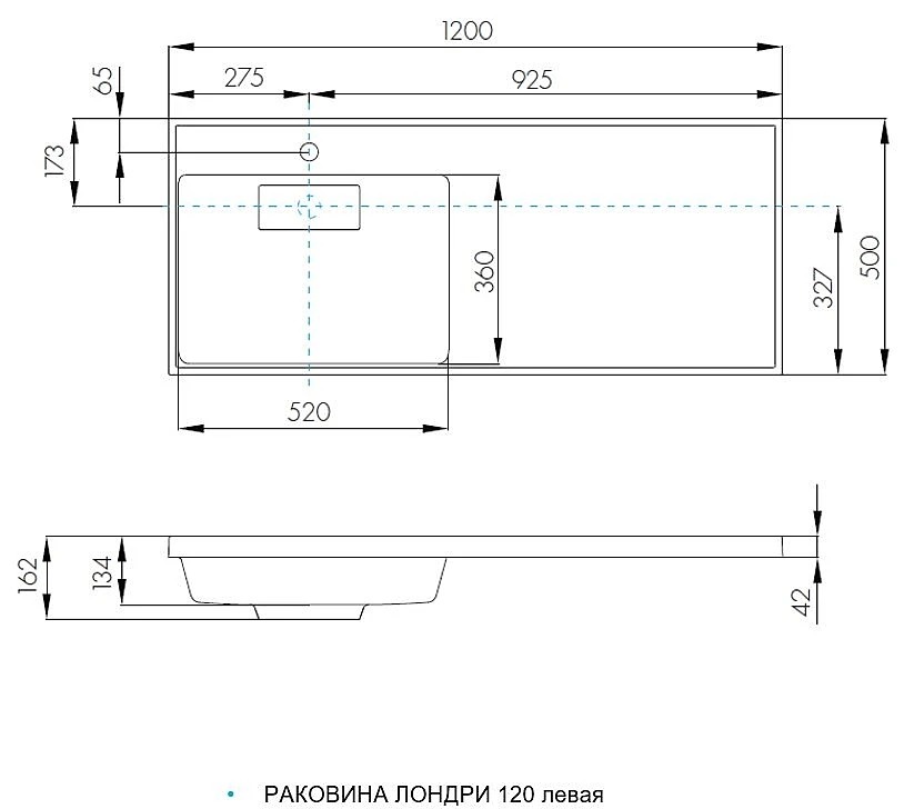Раковина встраивемая Aquaton Лондри 120 белая левая (1A72843KLH01L)