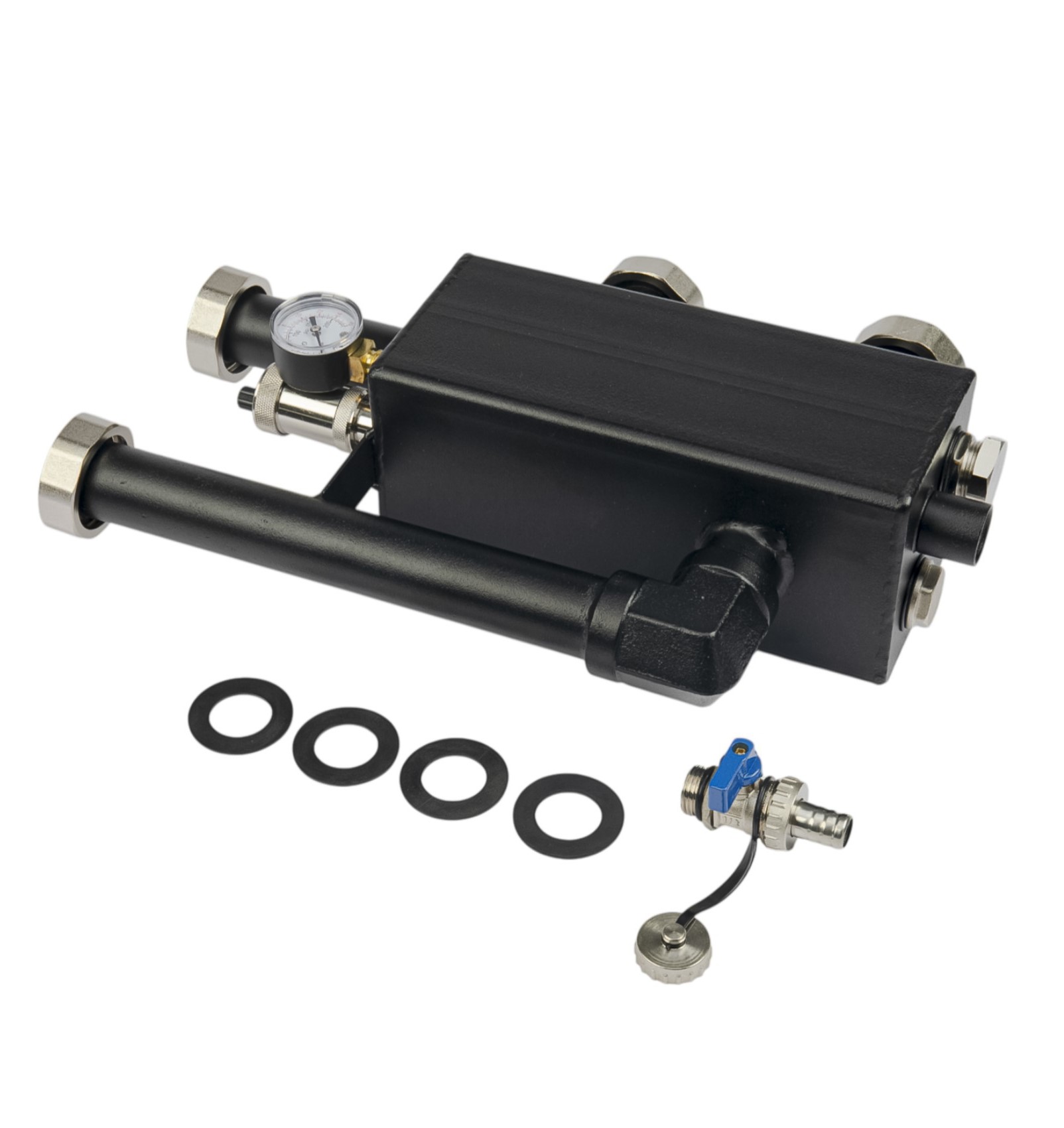 Модель оснащена надежной системой автоматического удаления воздуха и эффективным шламоуловителем, что значительно повышает долговечность оборудования. Конструкция обеспечивает равномерное разделение потоков теплоносителя и предотвращает гидравлические удары. Устройство легко монтируется благодаря стандартным накидным гайкам и оснащено манометром для контроля давления. Изоляция из EPP обеспечивает сохранение тепла и защиту корпуса в широком диапазоне температур.