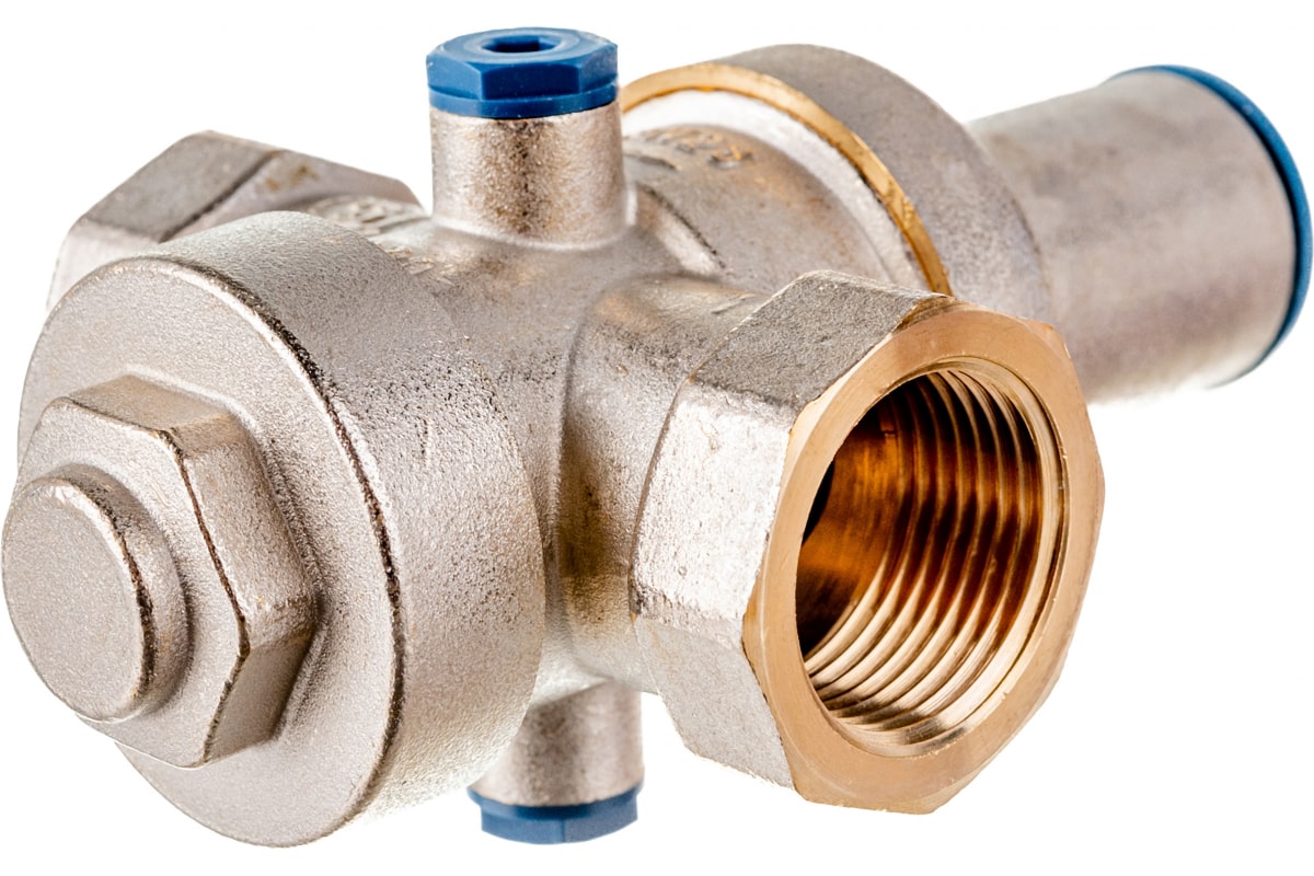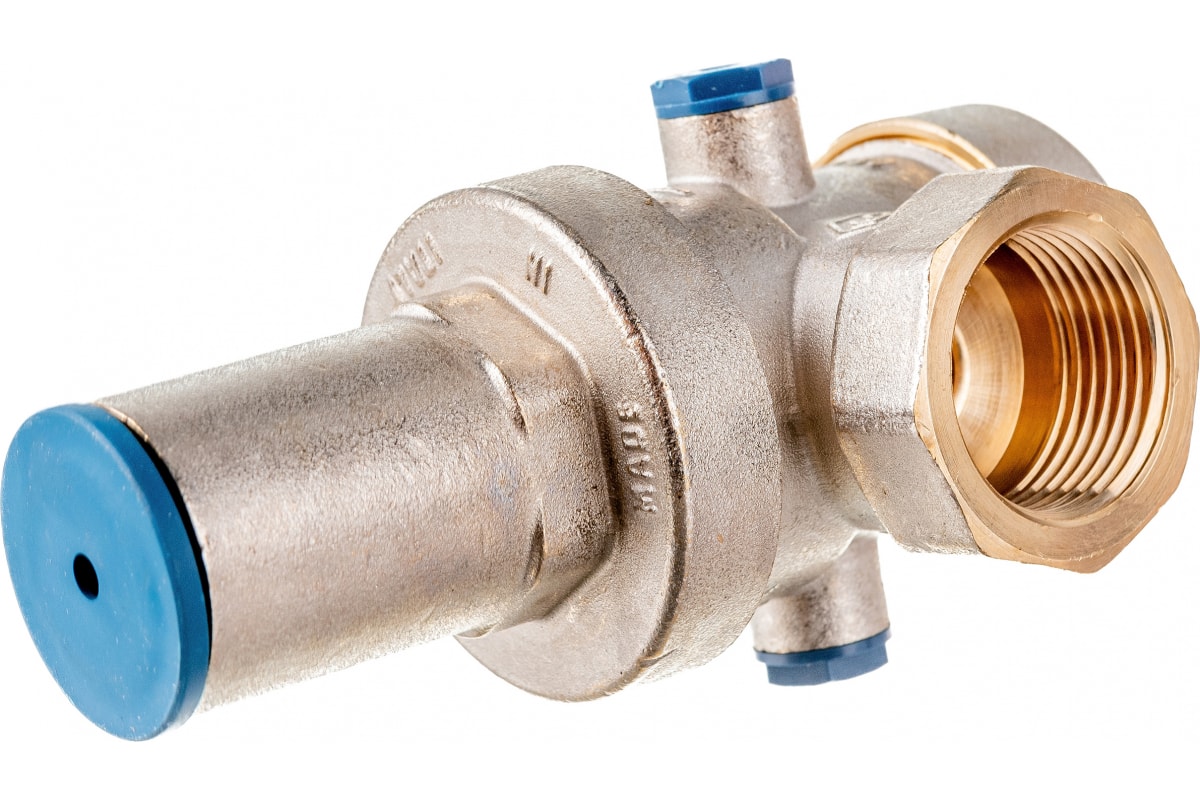 Устройство имеет внутреннюю резьбу на обоих концах, что обеспечивает простоту монтажа и интеграцию в систему. Оно также оснащено выходом под манометр, что позволяет легко подключить манометр для непосредственного измерения давления на выходе.