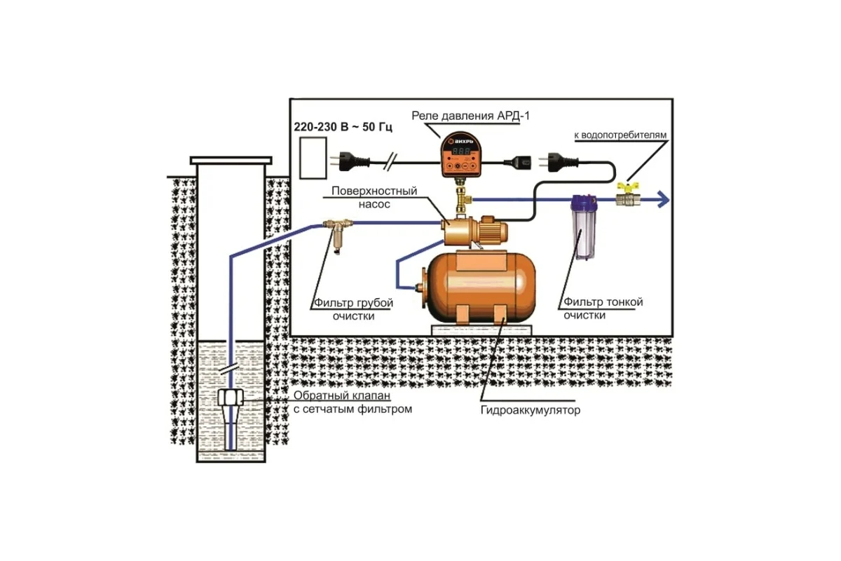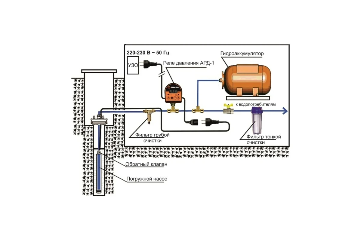 Стандартный размер присоединительных патрубков 1/2 дюйма позволяет легко подключать реле к системам водоснабжения. Эти функции делают реле давления АРД-1 Вихрь важным элементом любой современной системы водоснабжения с гидроаккумулятором или без него. Устройство повышает безопасность и надежность работы насосного оборудования, а также продлевает его срок службы.
