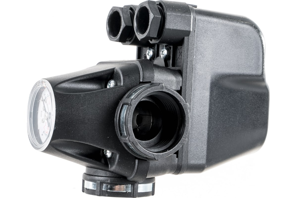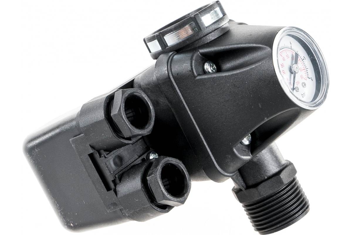 Реле давления РМ/5 предназначено для управления включением-выключением любых однофазных (230 В) насосов. Реле включает насос, когда давление падает ниже давления включения и выключает насос, когда давление в системе превышает давление выключения. Встроенный манометр позволяет контролировать давление в системе водоснабжения, а трехвыводной штуцер обеспечивает простое и быстрое соединение устройства с насосом и гидроаккумулятором.