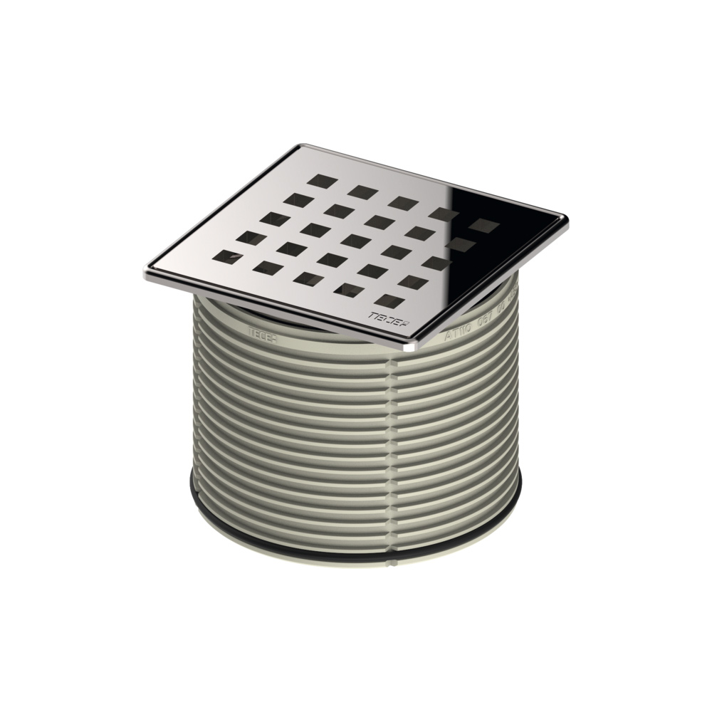 Дизайн-решетка, TECE, TECEdrainpoint S quadratum, ширина, мм-107, длина, мм-107, высота, мм-10-86, состоит из декоративной решетки "quadratum" 100 х 100 мм, в стальной рамке, с монтажным элементом, материал рамки и решетки-нержавеющая сталь, цвет-полированная нержавеющая сталь