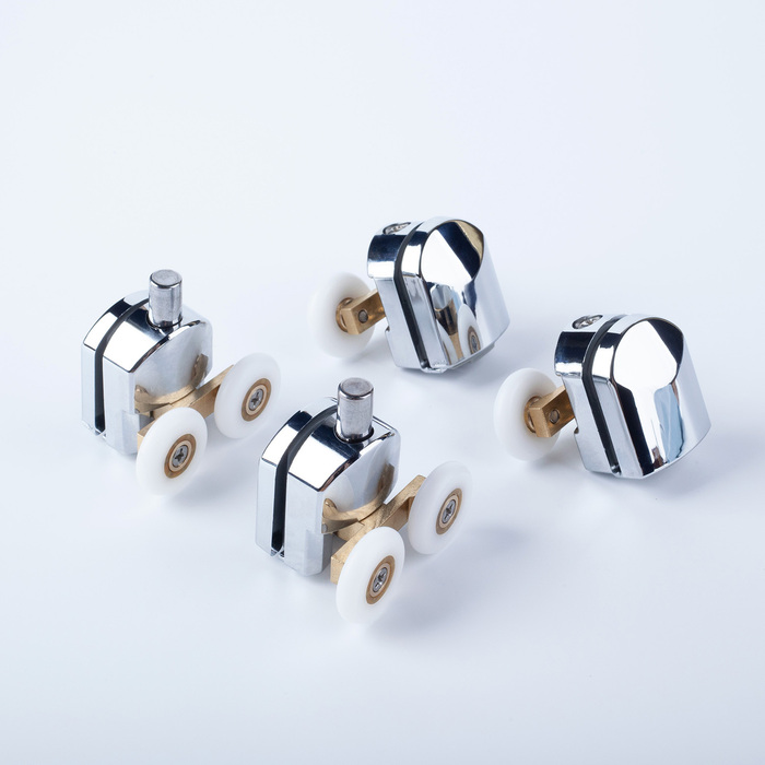 Комплект роликов, 4 шт (2 верхних и 2 нижних), двойные, D = 23 мм, хром, стекло 4 мм