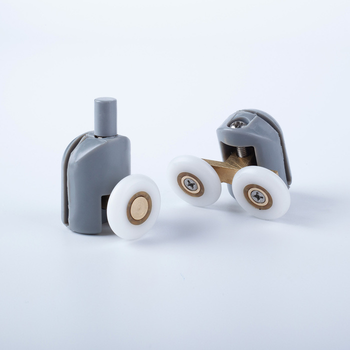 Комплект роликов, 4 шт (2 верхних, двойные и 2 нижних, одинарные), D = 23 мм, серый, стекло 4 мм