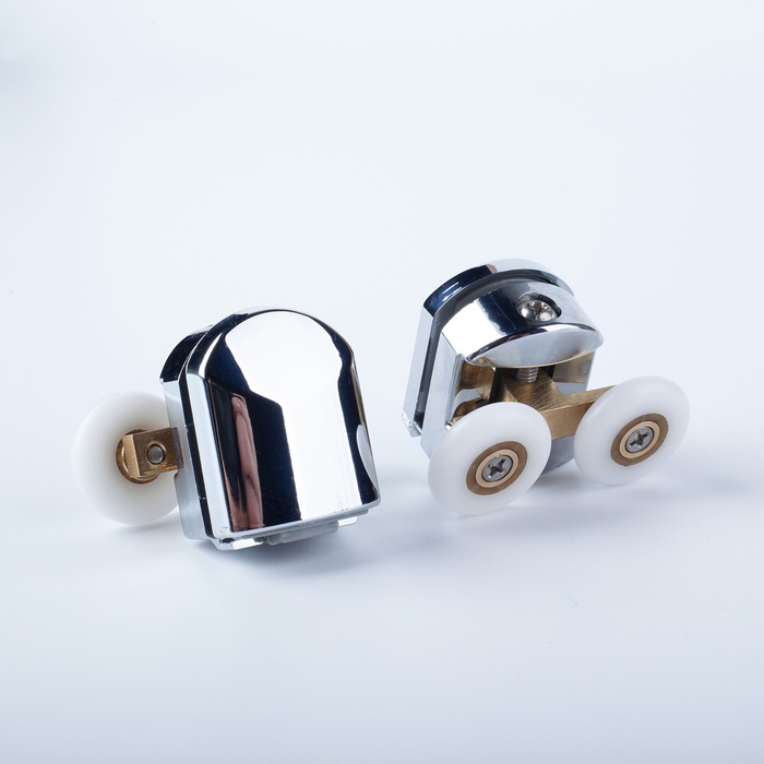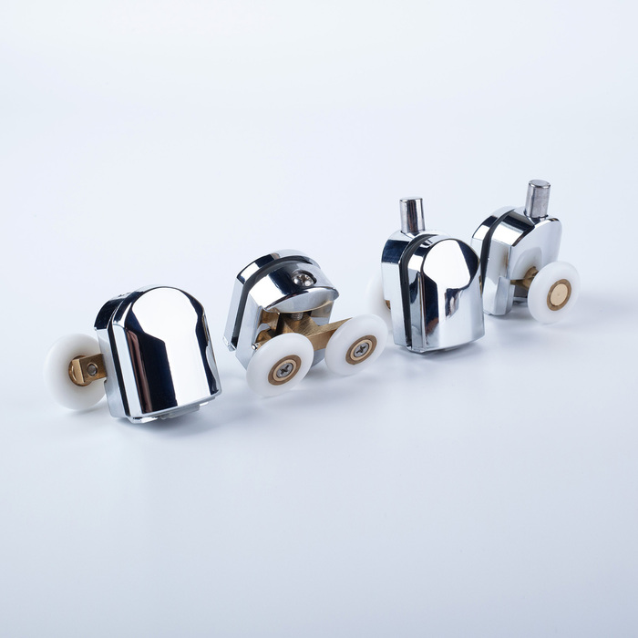 Комплект роликов, 4 шт (2 верхних, двойные и 2 нижних, одинарные), D = 23 мм, хром, стекло 4 мм