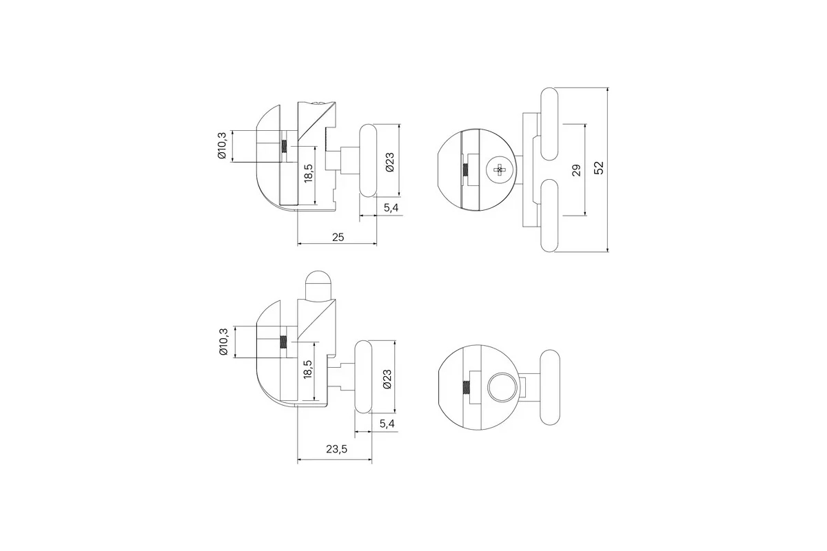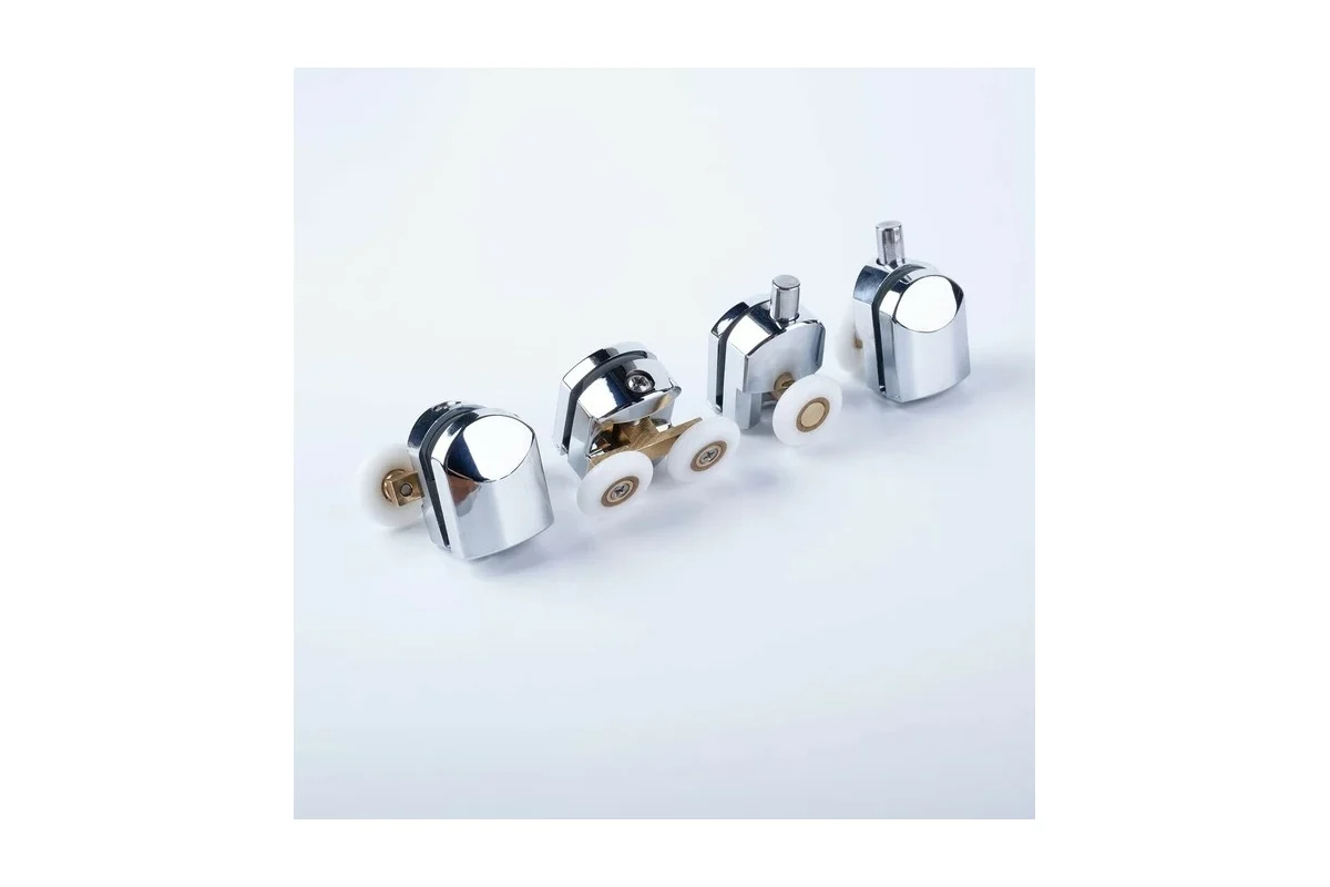 Комплект роликов, 4 шт (2 верхних, двойные и 2 нижних, одинарные), D = 23 мм, хром, стекло 5-6 мм