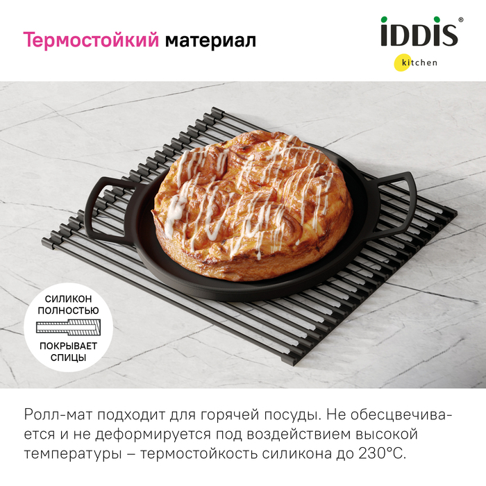 Ролл-мат, черный, размер: 353*420, круглые спицы, материал - 304 нерж. сталь / пищевой силикон