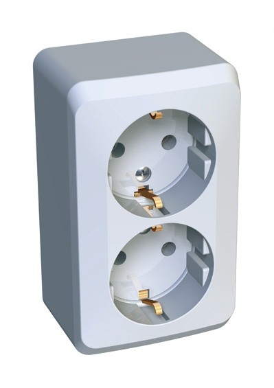 Розетка двойная наружная с заземлением без шторок "Этюд" (белая)