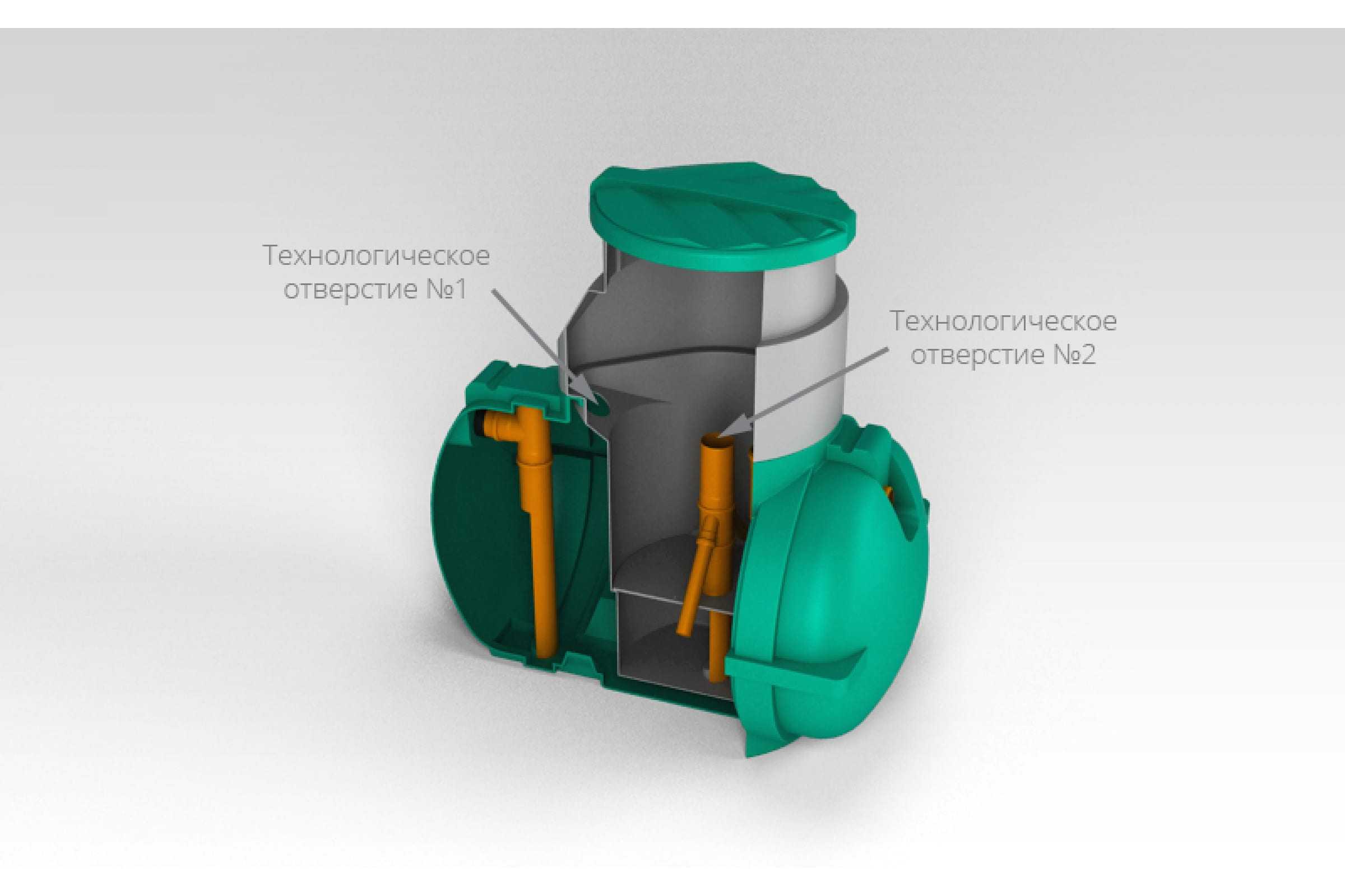 Комплектация: Септик, корпус септика 1 шт, вставка септика 1 шт, крышка 1 шт, комплект труб и фасонных элементов - 1 шт.