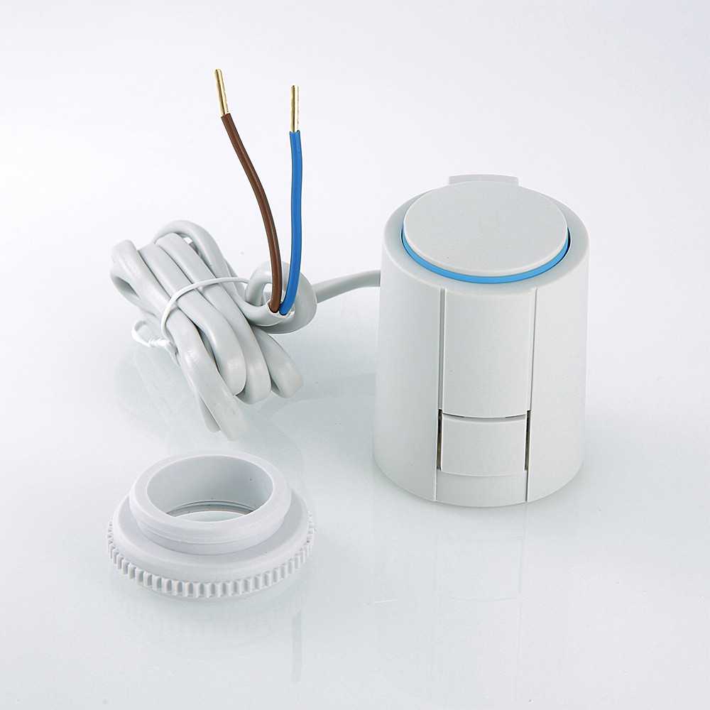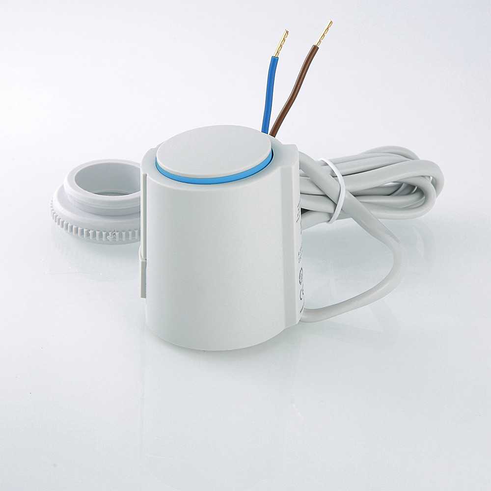 Привод для автоматического управления радиаторным или коллекторным термостатическим клапаном систем водяного теплого пола и охлаждения зданий по сигналу от термостата, датчика или контроллера. Действие основано на расширении заполняющего сильфон армированного парафина при протекании электрического тока через встроенный нагревательный элемент. Нормально открытый. Присоединение сервопривода к клапану – через переходник (в комплекте).