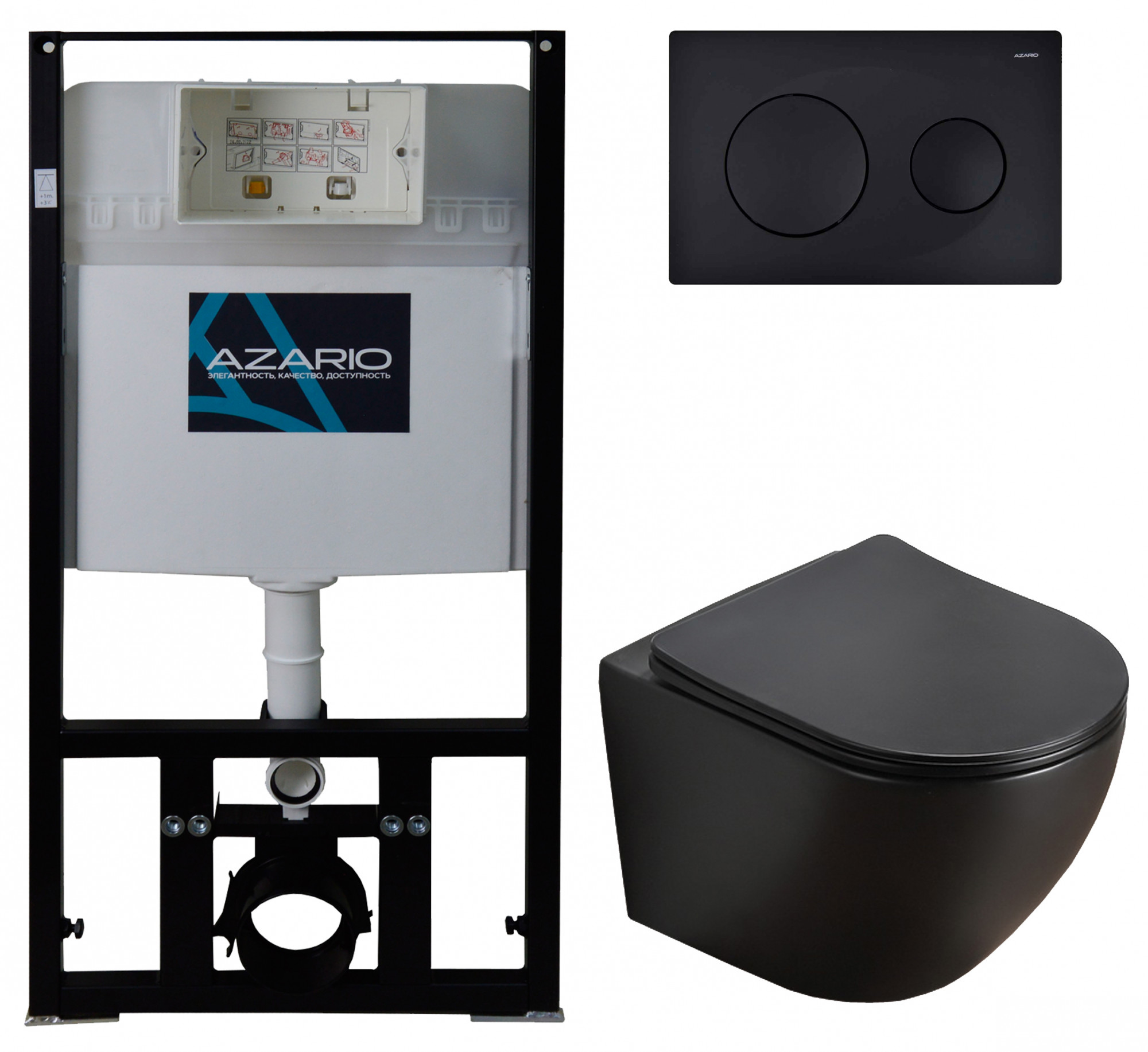Комплект инсталляция с унитазом Сет Azario инсталляция с унитазом Grado чёрный мат с сиденьем микролифт+клавиша 0013