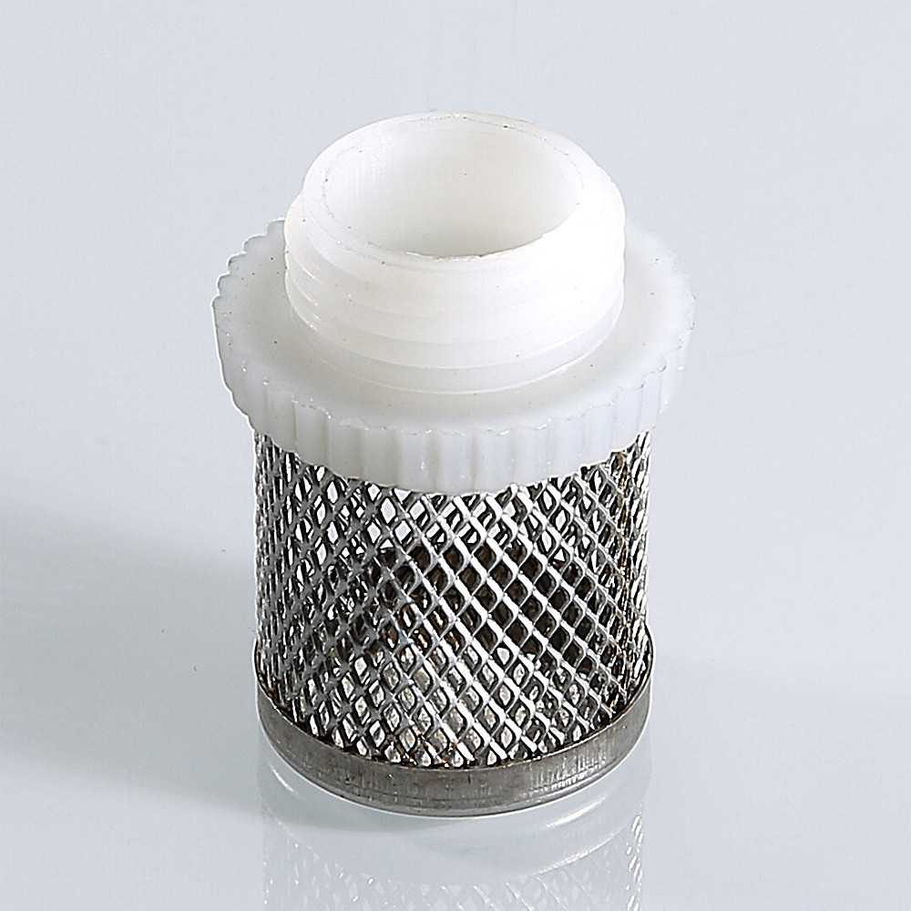 Фильтр сетчатый для обратного клапана VT.157 выполнен из нержавеющей стали, имеет полипропиленовую резьбовую обойму..