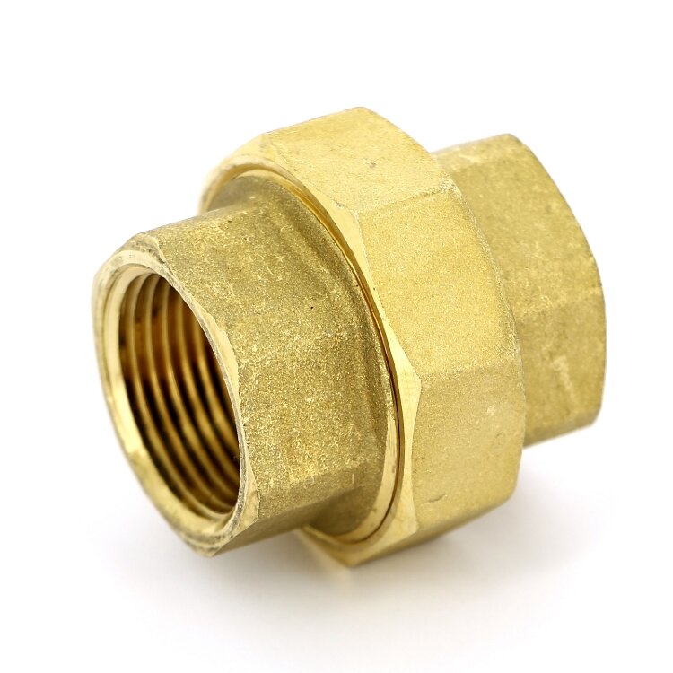 Сгон прямой 1" ВВ (латунь, с плоской прокладкой) Tiemme (1500403 / 1557CP) / Прямой фитинг, 3-компонентный, резьба внутренняя/внутренняя, с плоской прокладкой (Art. 1557CP)