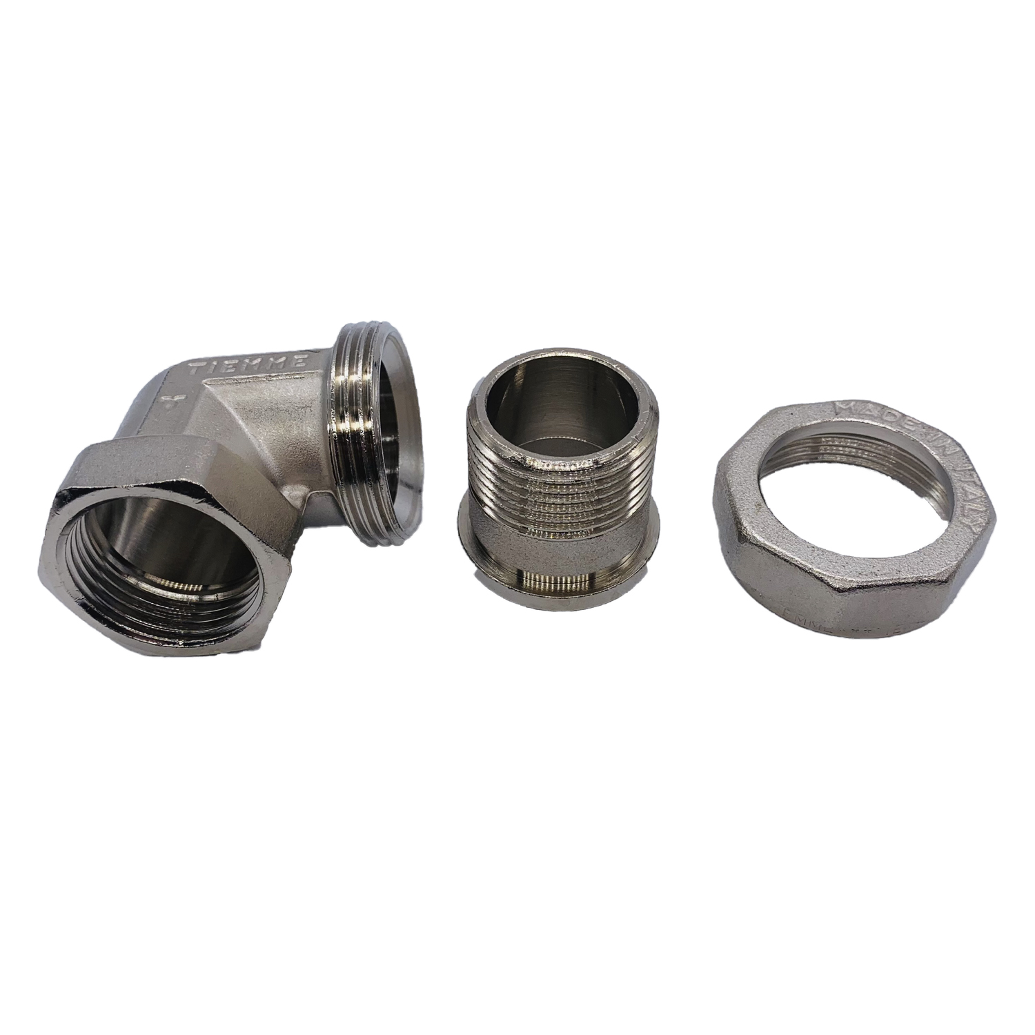 Сгон угловой "Tiemme" 1" ВН (никель) (1500250) / Угольник 3-компонентный, никелированный (Art. 1565N)
