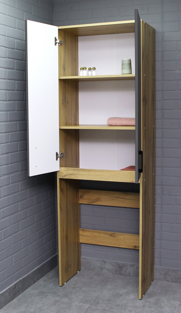 Этот шкаф — идеальное решение для ванной комнаты. Он выполнен в матовом стиле. Фасады из прочного МДФ, покрытие пленкой ПВХ обеспечивает долговечность. В модели предусмотрены петли с встроенным доводчиком, что гарантирует плавное закрытие дверей. Шкафчик в ванную подходит для организации пространства. Полки обеспечивают достаточно места для хранения аксессуаров. Пенал шкаф можно установить в любом удобном месте, создавая дополнительные возможности для хранения. Мебель удобно размещается, дополняя интерьер ванной или туалета. Предлагаемая модель поставляется в разобранном виде, что упрощает транспортировку. Гарантия на продукцию составляет два года, что подтверждает надежность и качество изделия. Шкафы подходят как для ванных комнат, так и туалетов. Полка над стиральной машиной помогает рационально использовать пространство. Это функциональная мебель для ванной, которая сочетает стильный дизайн и практичность.