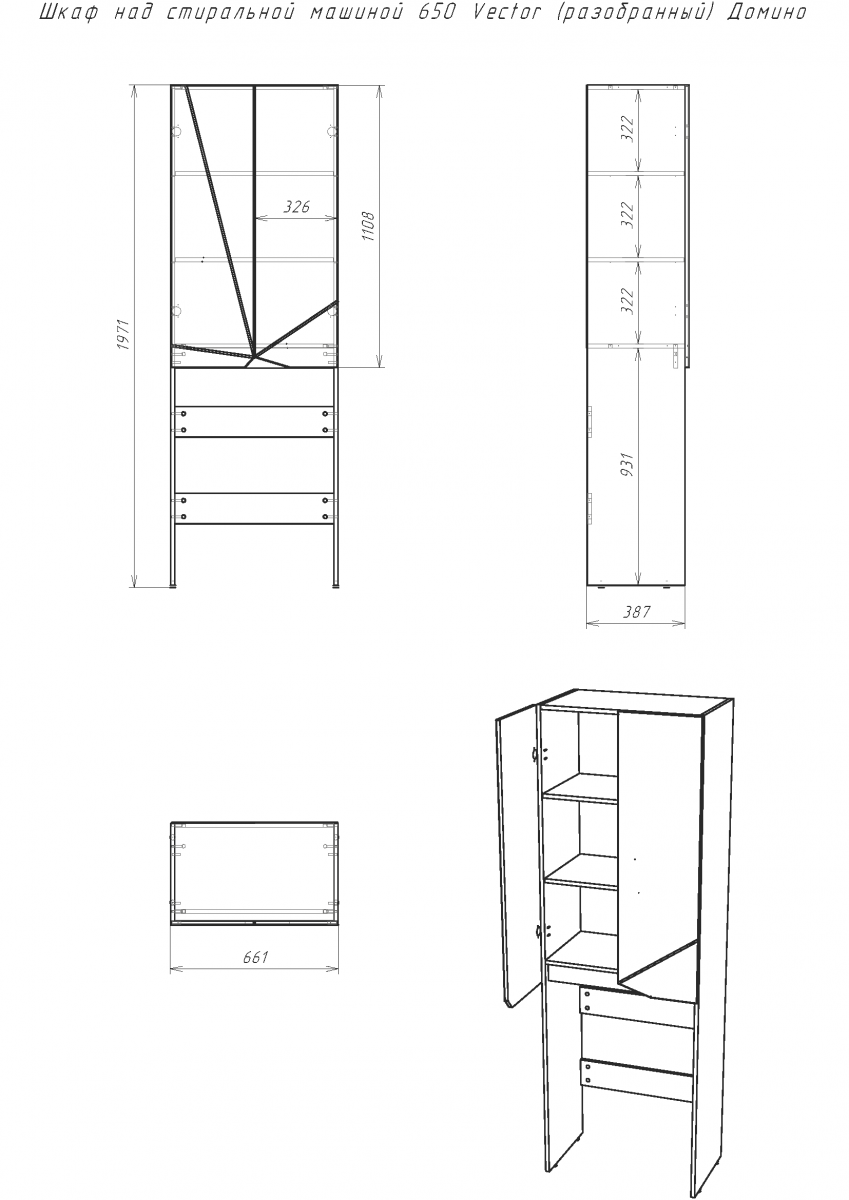 Шкаф над стиральной машиной 650 Vector (разобранный) Домино (DV6606H)