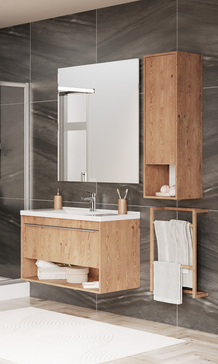 Шкафы для ванной комнаты коллекции Хоуп — это идеальное сочетание простоты линий и функциональности, которое преобразит ваше пространство. Каждое изделие в этой коллекции создана с вниманием к деталям и стремлением к гармонии, что делает их не только практичными, но и эстетически привлекательными. Элегантные линии и современный дизайн подчеркивают утонченность интерьера, а использование влагостойкой ЛДСП гарантирует долговечность и простоту в уходе. Корпус и фасад выполнены из влагостокой ЛДСП в текстурированном древесном декоре. Навесные шкафы коллекции Хоуп за счет своих цветовых решений в белом, древесном и светло-зеленом исполнении идеально впишутся в любой стиль ванной комнаты, от минимализма до классики, создавая атмосферу уюта и комфорта. Они не только помогут поддерживать порядок, но и станут ярким акцентом вашего интерьера. Навесные шкафы открываются простым нажатием (push-to-open). За фасадом-створкой скрываются регулируемые полочки в цвет корпуса из влагостокой ЛДСП. Они крепятся на надежные полкодержатели, которые защищают от опрокидывания. Регулируемые петли позволят использовать весь функционал тумбы бесшумно и с комфортом, а открытая ниша дает возможность убирать туда необходимы принадлежности, чтобы они всегда были под рукой. Высота полезного пространства - 225 мм. Реальный цвет изделий может отличаться от представленных изображений. Производитель оставляет за собой право в любой момент, без обязательного извещения, вносить изменения в комплектацию, дизайн и характеристики , не ухудшающие качество товара.