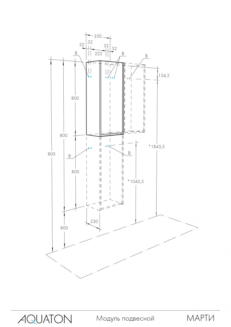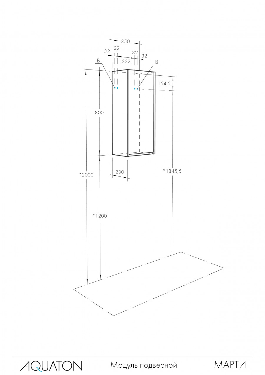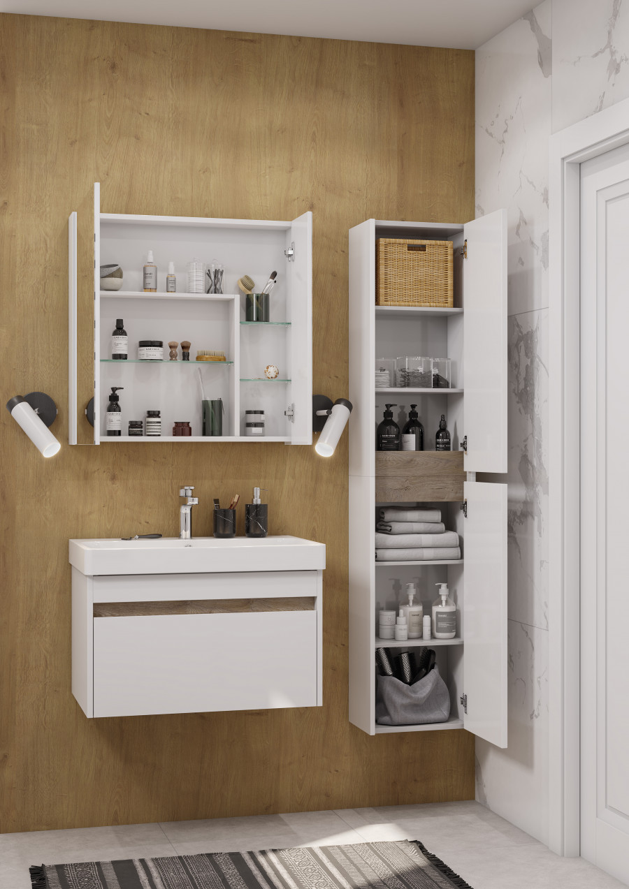 Шкаф подвесной Aquaton Марти 350x230x800 белый глянец, дуб эндгрейн (1.A270.2.03M.Y01.0)