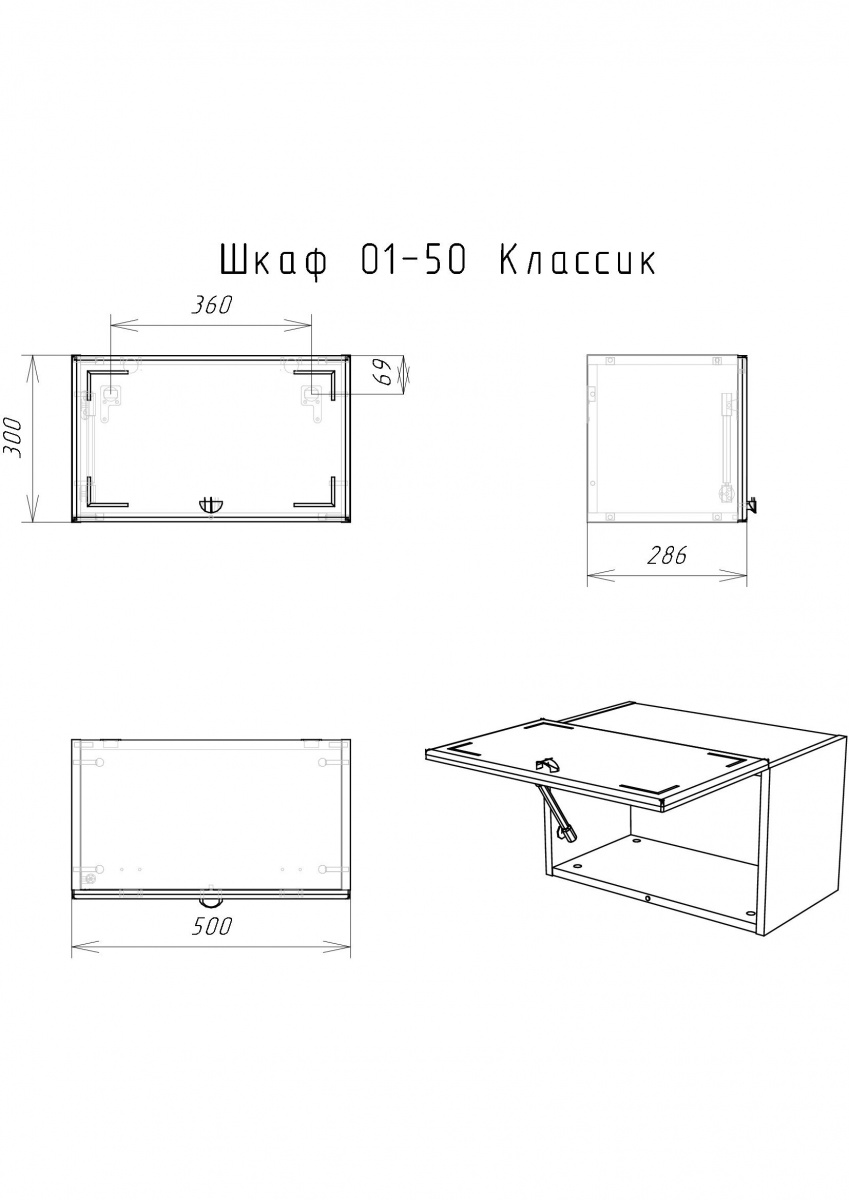 Шкаф подвесной Классик 01-50 Айсберг (разобран) Домино (DA1144HR)