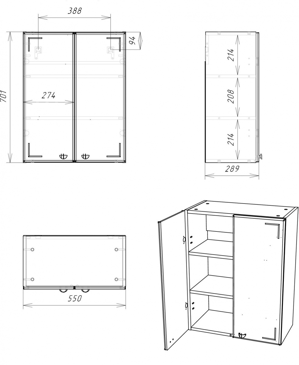 Шкаф подвесной Классик 02-55 Айсберг (разобран) Домино (DA1146HR)