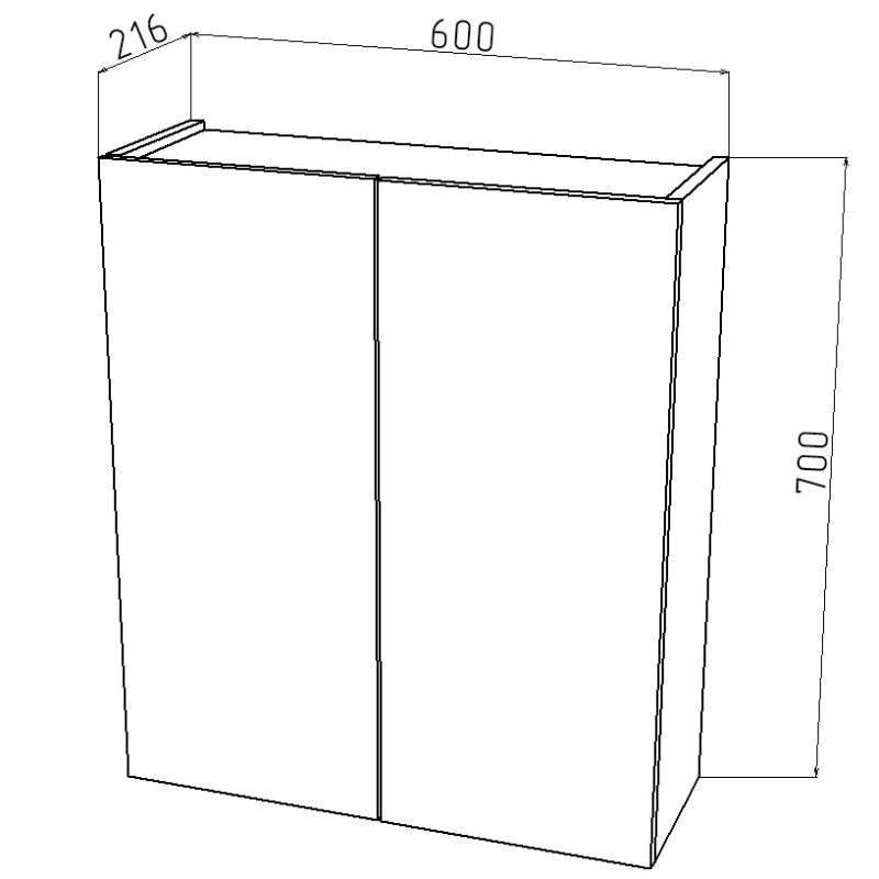 Подвесной шкаф Универсал торговой марки Melodia della vita с габаритными размерами 600х216х700 это стильное и эргономичное решение для вашей ванной комнаты. Шкаф имеет две распашные двери, за ними две вкладные полки. Дверь оборудована одной петлёй с доводчиком, одной простой. Полки имеют возможность регулировки по высоте. Шкаф ""перевёртыш"" - может быть правого или левого открывания. Крепится к стене. Поставляется в собранном виде в комплекте с крепежом и ножками.
