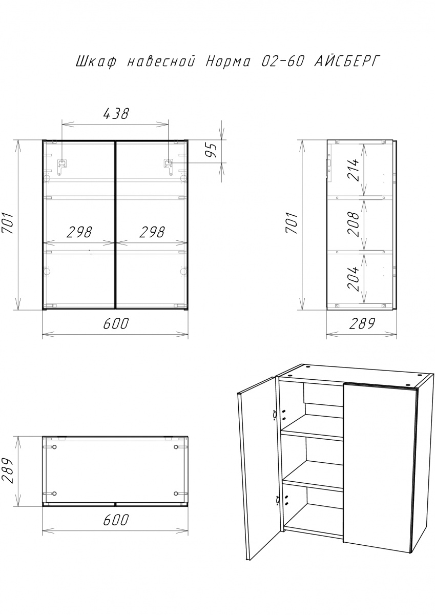 Шкаф навесной Норма 02-60 АЙСБЕРГ для ванной отличается функциональностью и современным дизайном. Этот шкаф в ванную комнату подходит для хранения различных предметов, обеспечивая порядок и удобный доступ. Предлагаемое решение – отличный выбор для тех, кто ищет мебель для ванной комнаты с оптимальными характеристиками.