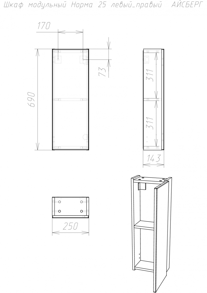 Шкаф модульный Норма 25 левый/правый АЙСБЕРГ для ванной отличается функциональностью и современным дизайном. Этот шкаф в ванную комнату подходит для хранения различных предметов, обеспечивая порядок и удобный доступ. Предлагаемое решение – отличный выбор для тех, кто ищет мебель для ванной комнаты с оптимальными характеристиками.