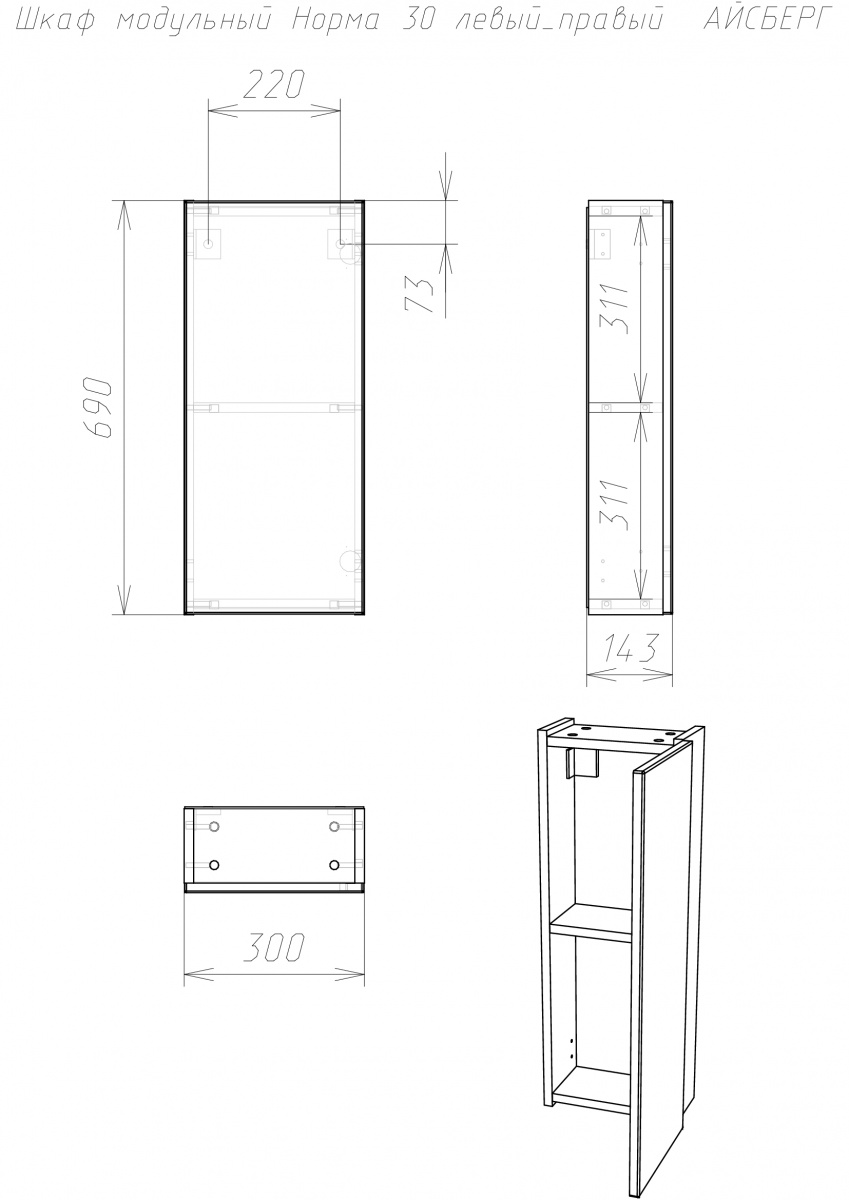 Шкаф модульный Норма 30 левый/правый АЙСБЕРГ для ванной отличается функциональностью и современным дизайном. Этот шкаф в ванную комнату подходит для хранения различных предметов, обеспечивая порядок и удобный доступ. Предлагаемое решение – отличный выбор для тех, кто ищет мебель для ванной комнаты с оптимальными характеристиками.