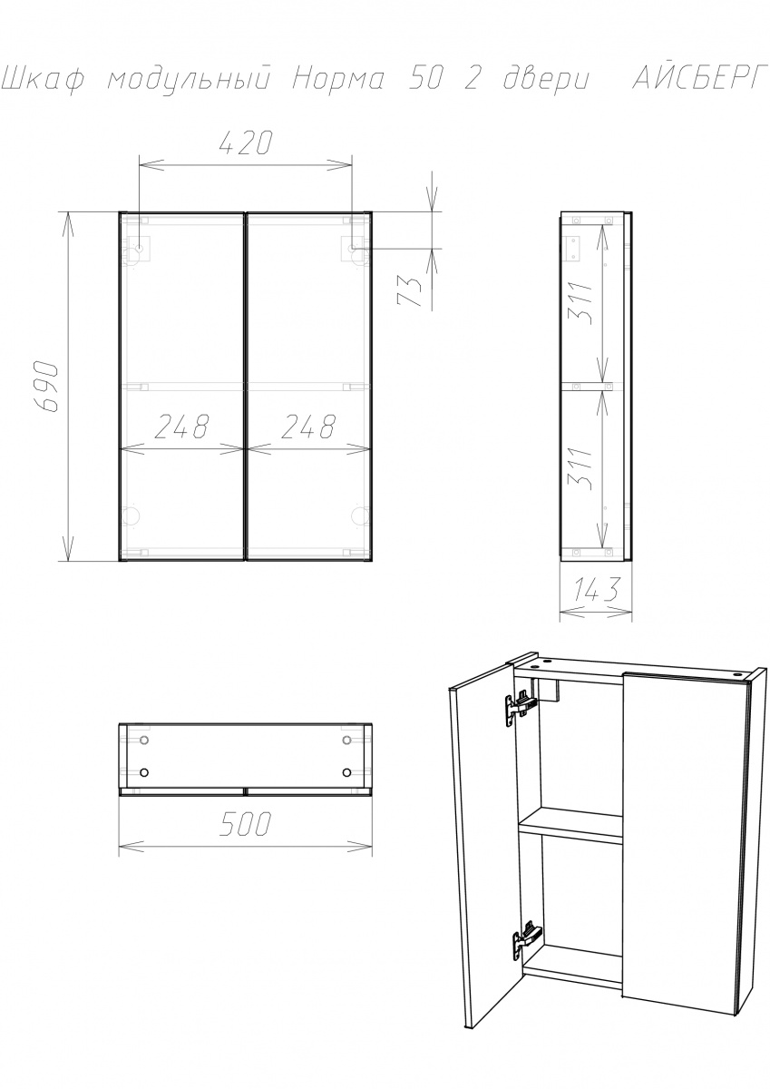 Шкаф модульный Норма 50 2 двери АЙСБЕРГ для ванной отличается функциональностью и современным дизайном. Этот шкаф в ванную комнату подходит для хранения различных предметов, обеспечивая порядок и удобный доступ. Предлагаемое решение – отличный выбор для тех, кто ищет мебель для ванной комнаты с оптимальными характеристиками.