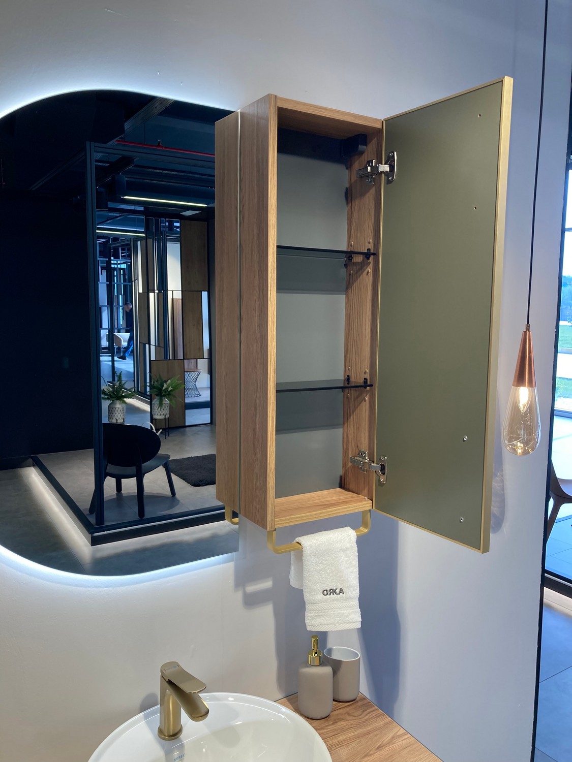 Шкаф подвесной Orka Salerno 300x160x850 зеленый матовый, светлое дерево (3005749)