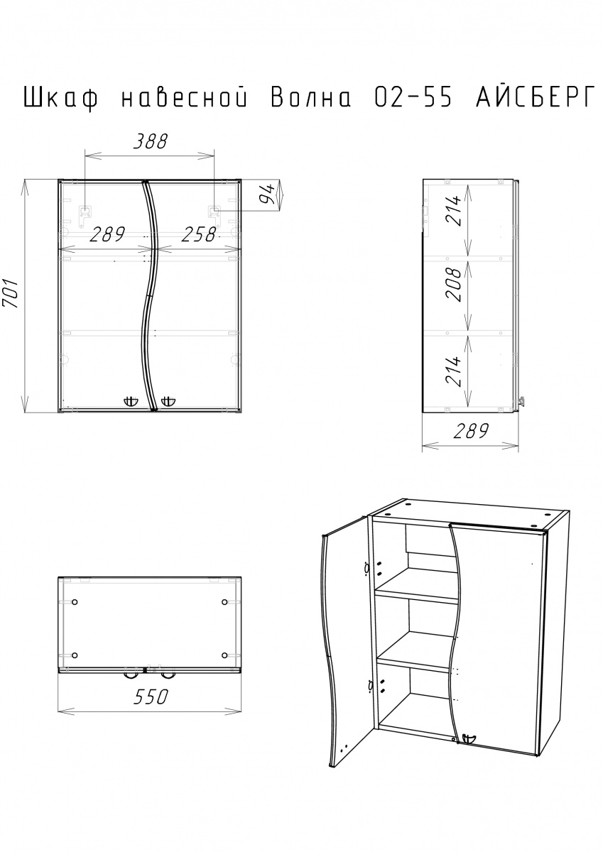 Шкаф подвесной Волна 02-55 Айсберг (разобранный) Домино (DA1066HR)
