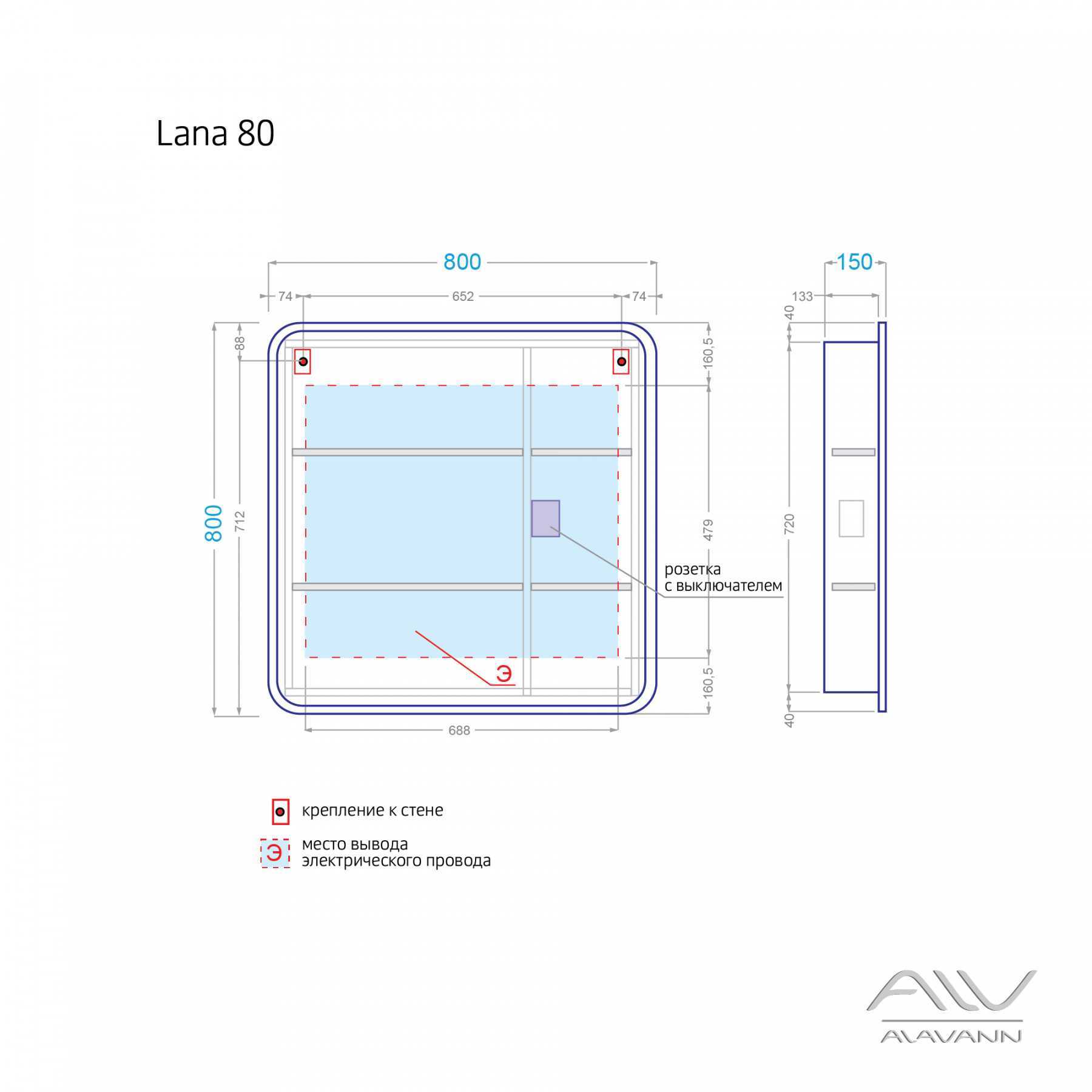 При изготовлении зеркало шкафа Лана (ширина 80) производители использовали технологию LightFasade. Зеркальное полотно фасада с серебряной амальгамой обладает повышенной влагостойкостью и комфортной ручкой - зацепом.