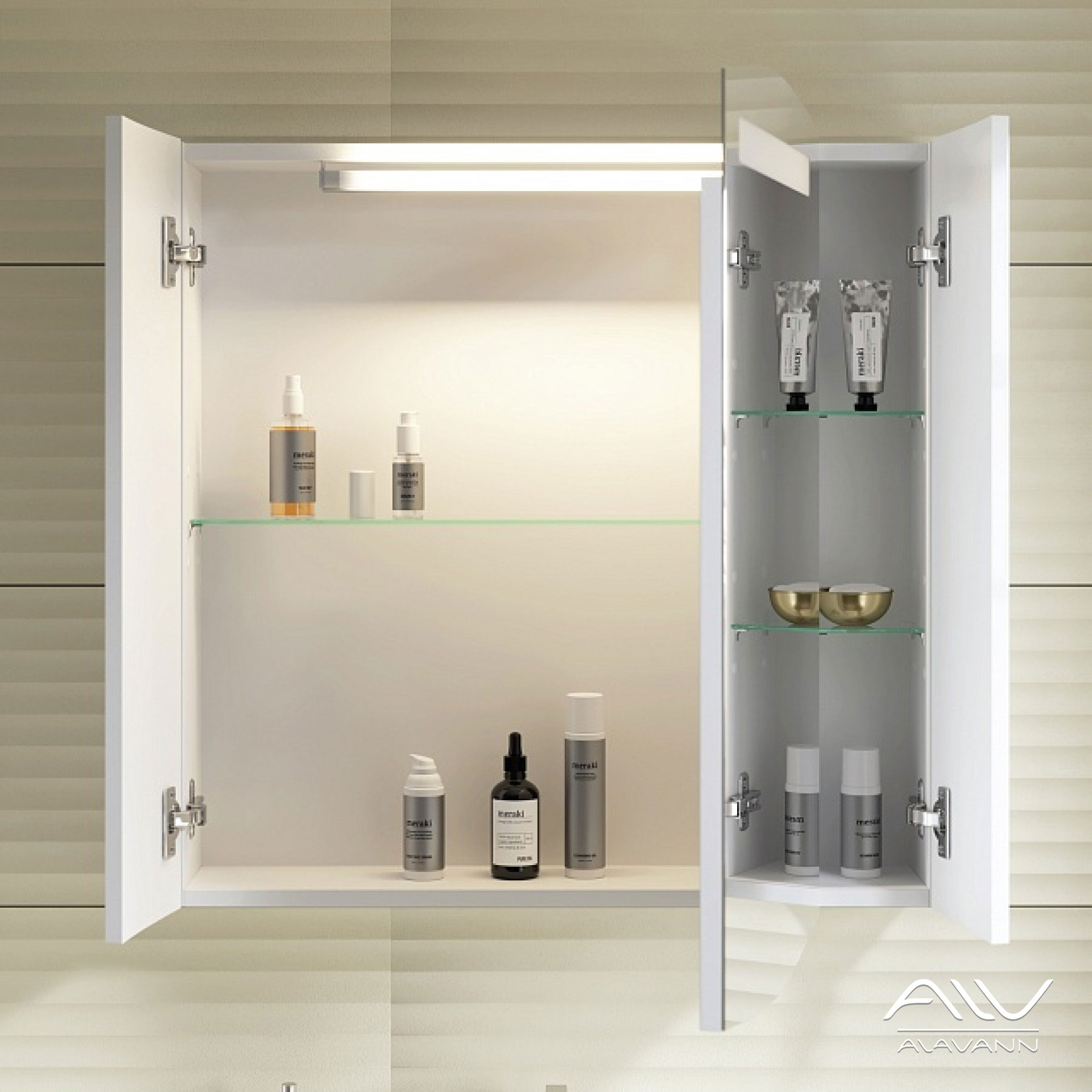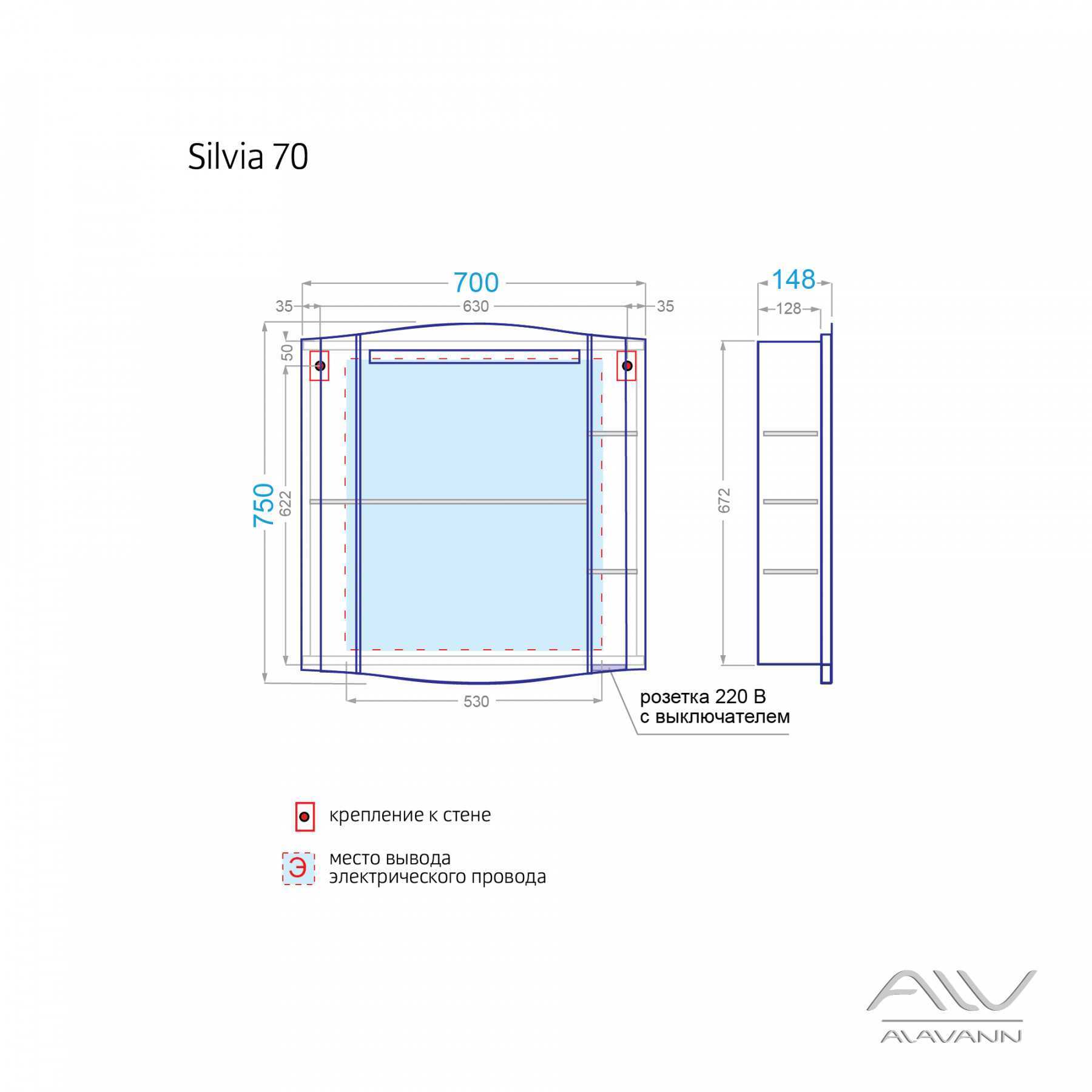 Зеркало-шкаф Silvia - стильный предмет мебели, который станет яркой деталью оформления интерьера ванной комнаты. Для удобства в шкаф встроен люминесцентный светильник - дополнительный источник освещения зеркального полотна. Теперь наносить косметику и ухаживать за собой станет еще проще! Зеркало выполнено на основе серебряной амальгамы, которая обеспечивает качественное изображение, влагостойкость и долгий срок эксплуатации изделия. Фасад на доводчиках.
