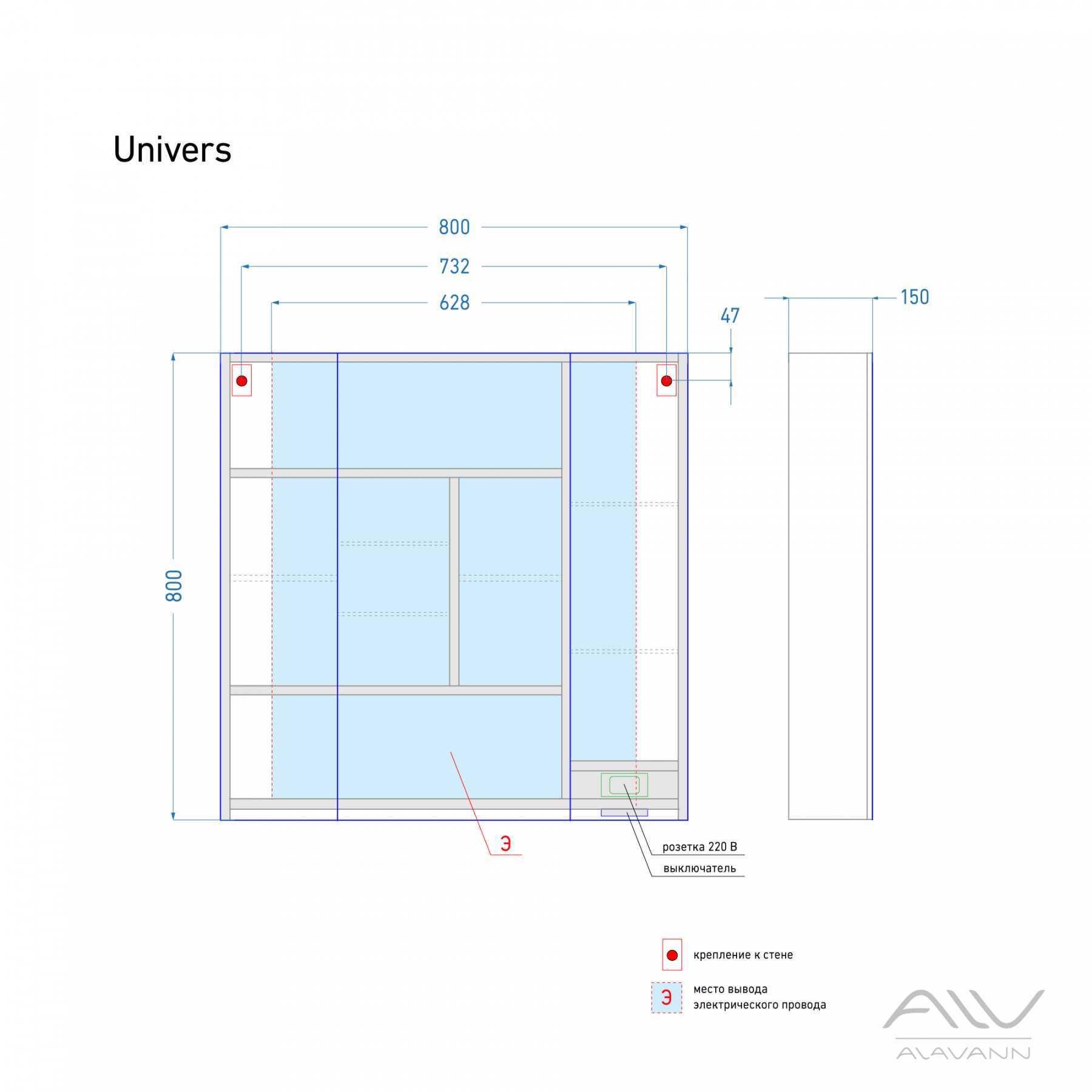 Шкаф зеркальный Alavann Univers 80