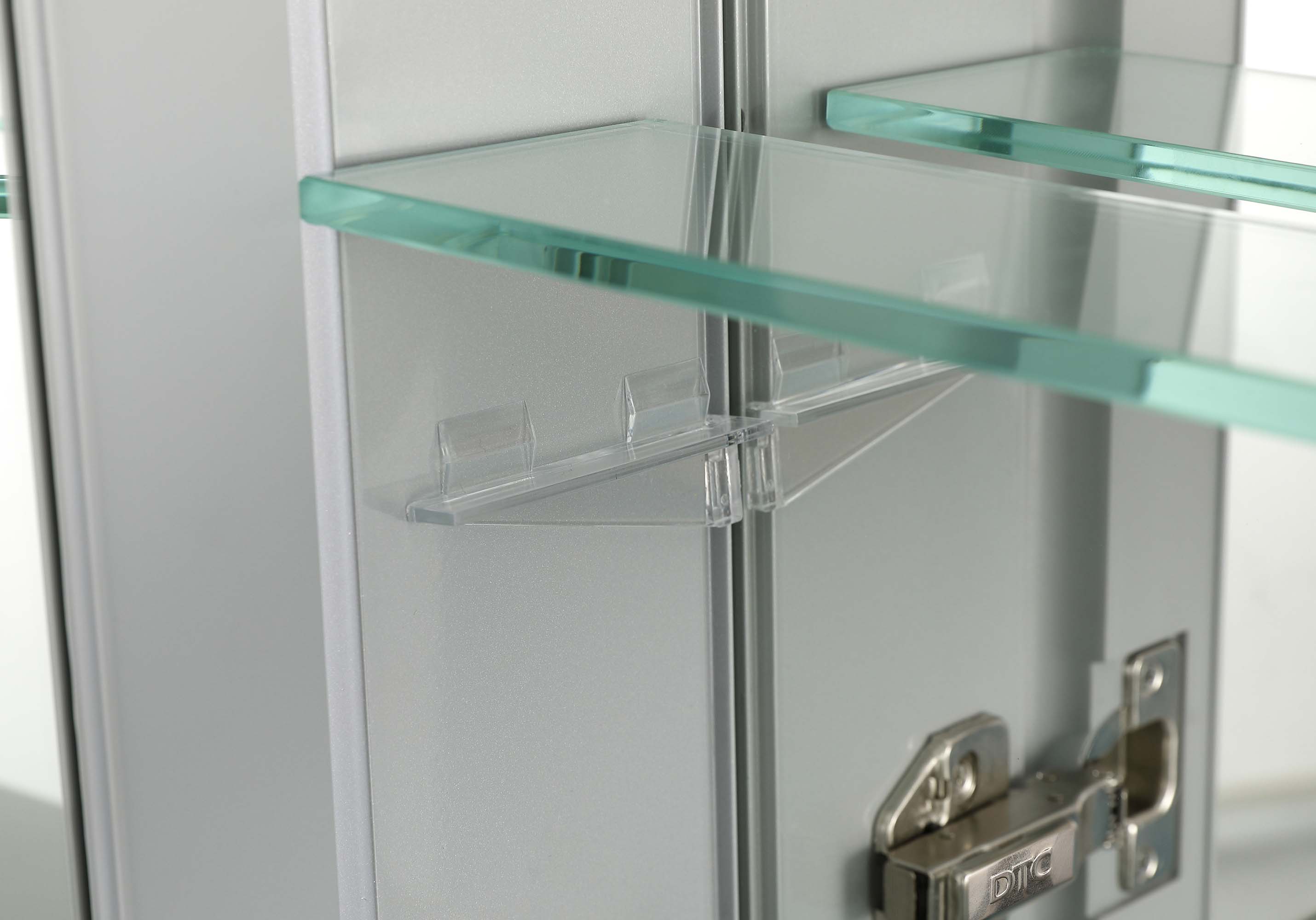 Зеркальный шкаф оснащен практичными полочками, которые позволяют организовать хранение различных предметов — от косметики до банных принадлежностей. Пространство внутри шкафа можно легко настроить под свои нужды, благодаря регулируемым полкам.