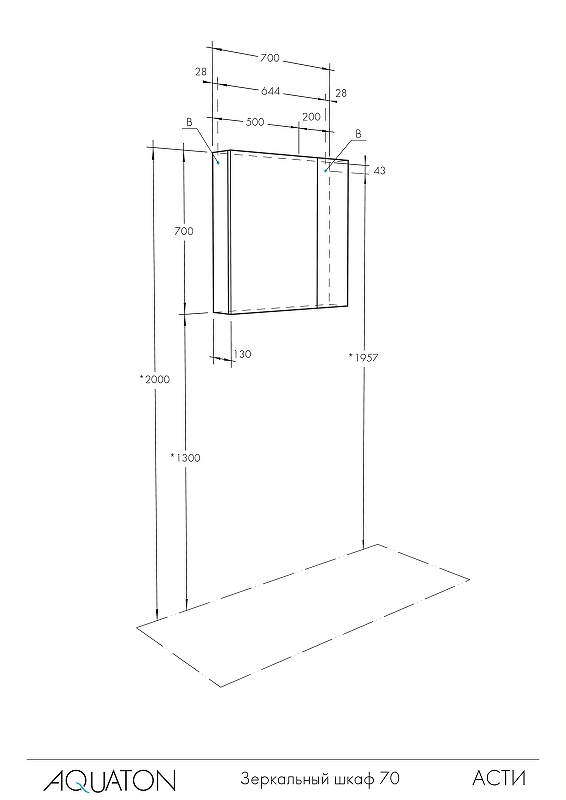 Шкаф зеркальный Aquaton Асти 70 (1A263402AX010)