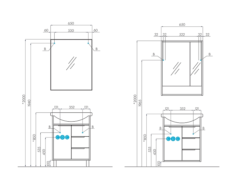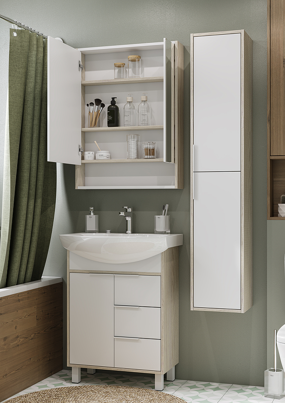 Шкаф зеркальный Aquaton Рико 65 Белый/Ясень фабрик (1A215202RIB90)