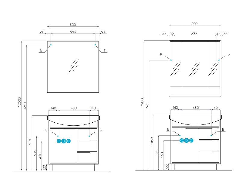 Шкаф зеркальный Aquaton Рико 80 Белый/Ясень фабрик (1A215302RIB90)