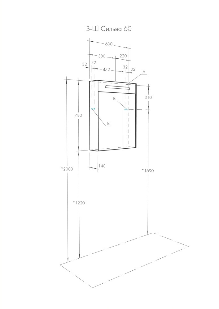 Шкаф зеркальный Aquaton Сильва 60 Дуб Фьорд (1A216202SIW60)