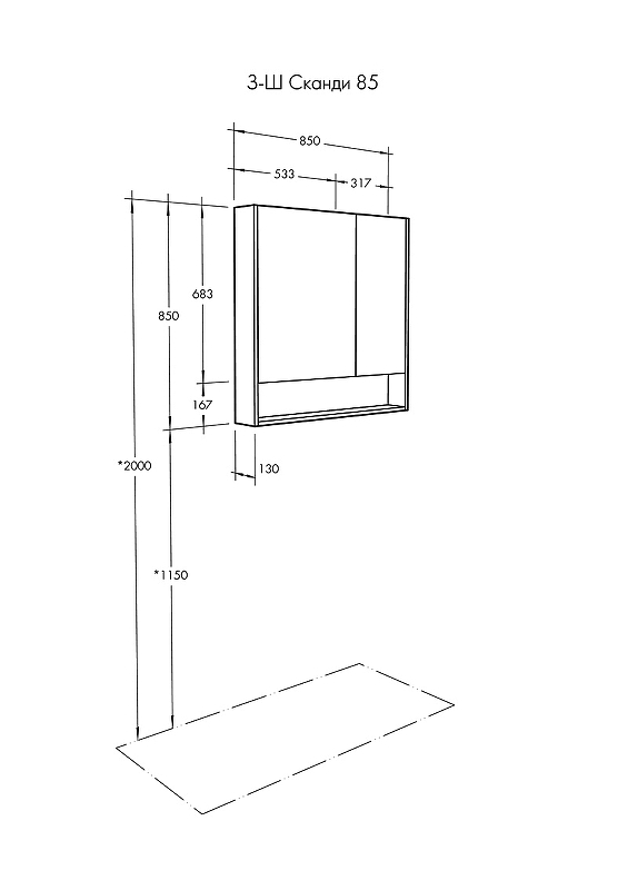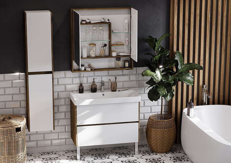 Шкаф зеркальный Aquaton Сканди 90 Белый/Дуб Рустикальный (1A252302SDZ90)