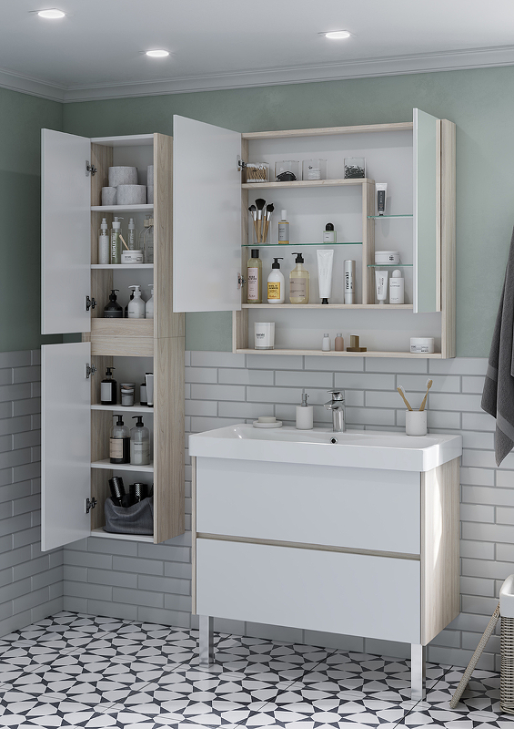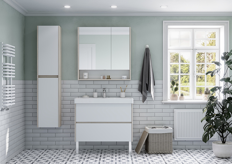 Шкаф зеркальный Aquaton Сканди 90 Белый/Дуб Верона (1A252302SDB20)