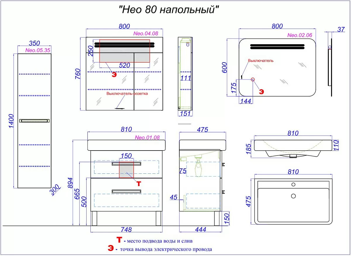 Шкаф зеркальный Aqwella Neo 800x760x150 белая (Neo.04.08)