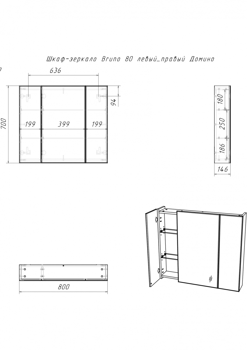 Шкаф зеркальный Bruno 80 универсальный Домино (DBr2905HZ)