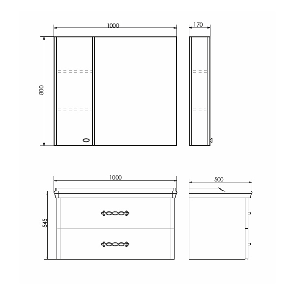 Шкаф зеркальный Comforty Диана 1000x800x170 белый (00-00001308)