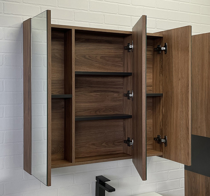 Шкаф зеркальный Comforty Соло 900x150x800 дуб темно-коричневый (00-00010980)