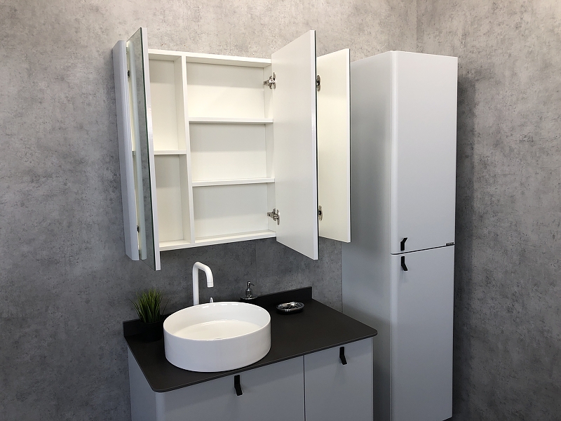 Шкаф зеркальный Comforty Сорренто 900x150x800 Сетло серый (00-00001968)